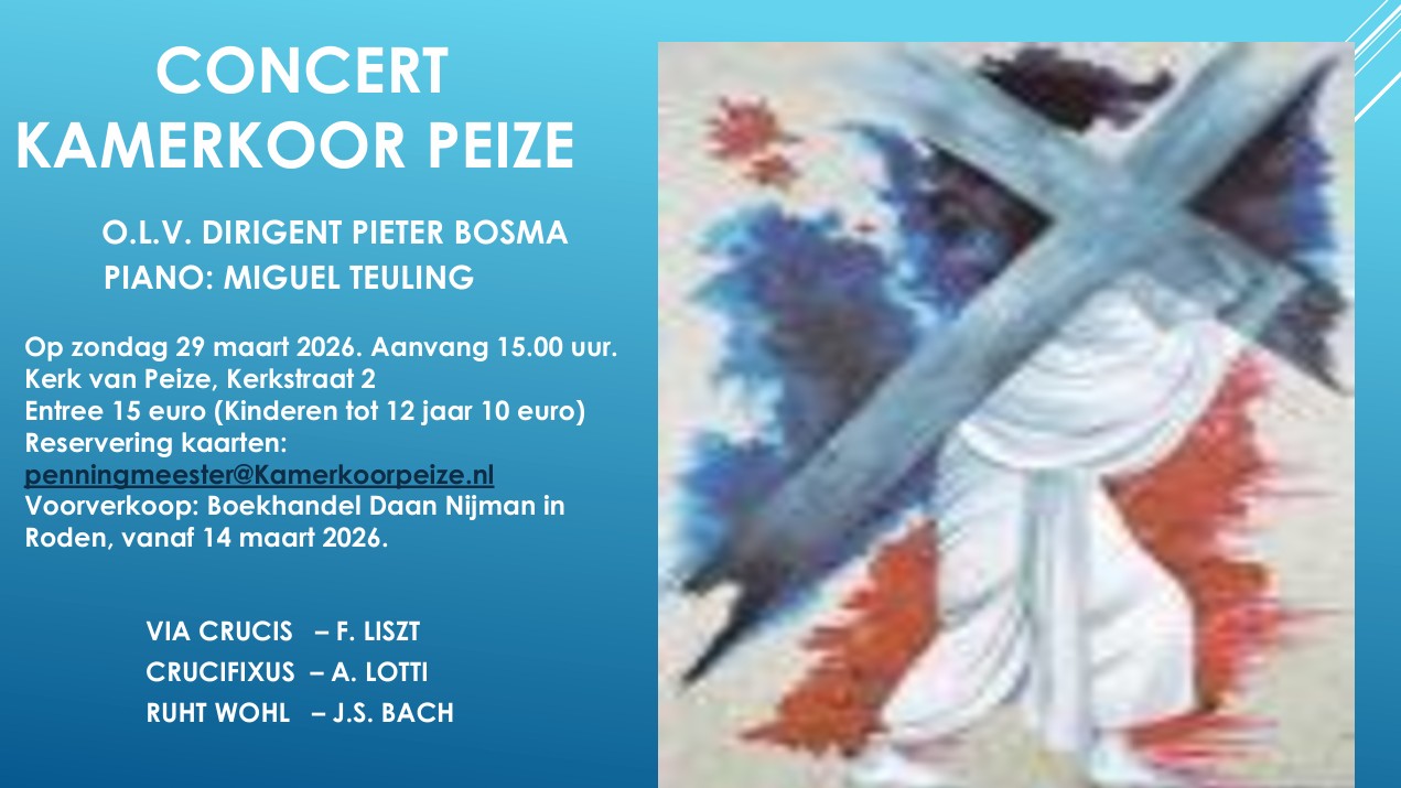 Het concert vindt plaats in de kerkvan Peize aan de Kerkstraat 2.