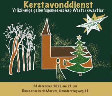 Kerstavondviering in de Romaanse Kerk Marum Datum: woensdag 24 december Vrijzinnig Westerkwartier viert kerstfeest mmv vocaal ensemble Vocasa, met voorganger ds. Christine Schlette. Vooraf is er warme wijn en wat lekkers. Iedereen is welkom. Aanvang 21.00 uur, de kerk is open om 20.30 uur. Dit item delen: Op Facebook Op X