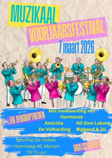 Op zaterdag 7 maart vindt het muzikaal voorjaarsfestival plaats in sporthal De Holten in Marum.