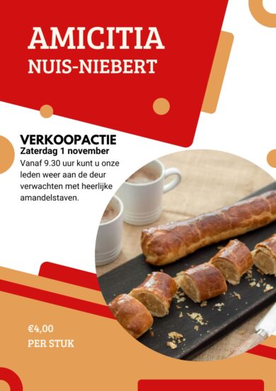 Op zaterdag 1 november a.s. komen de leden van muziekvereniging Amicitia Nuis-Niebert bij u langs met overheerlijke amandelstaven.