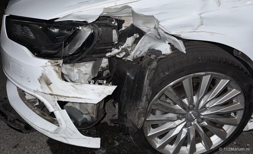 Audi zwaar beschadigd in de nacht in Grijpskerk