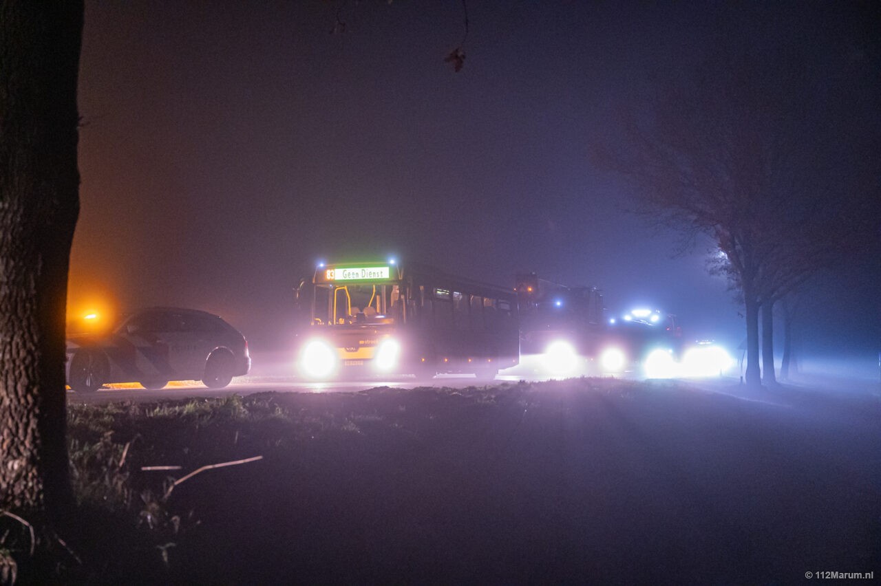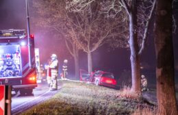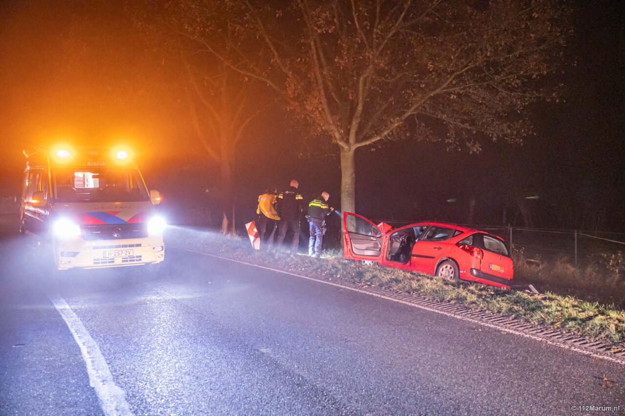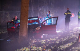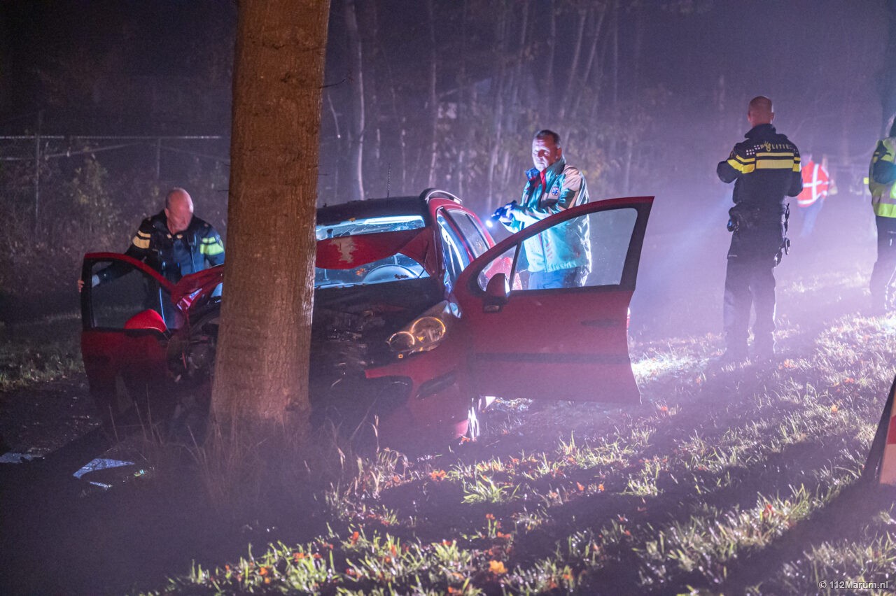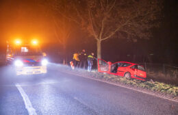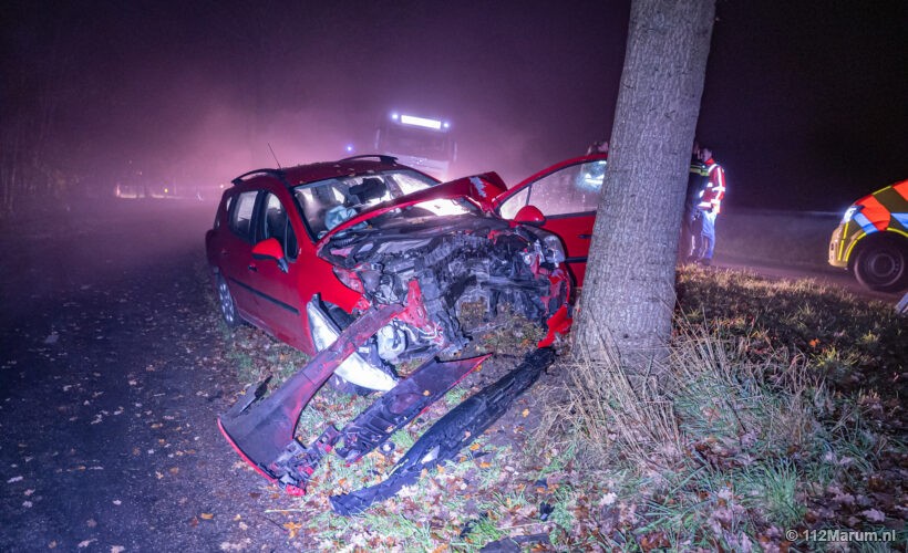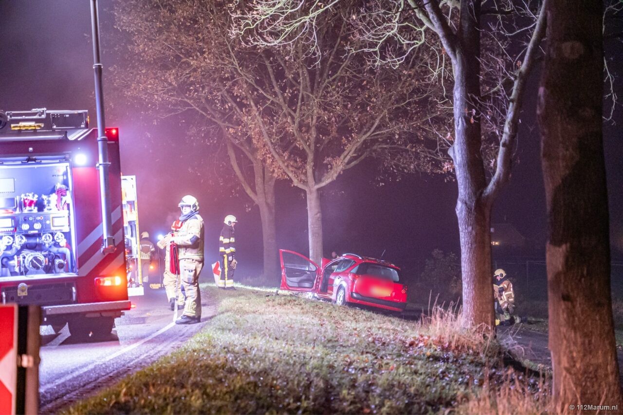 In dichte mist is even na zes uur vanavond op de Scheiding (N358) een auto tegen een boom gebotst.