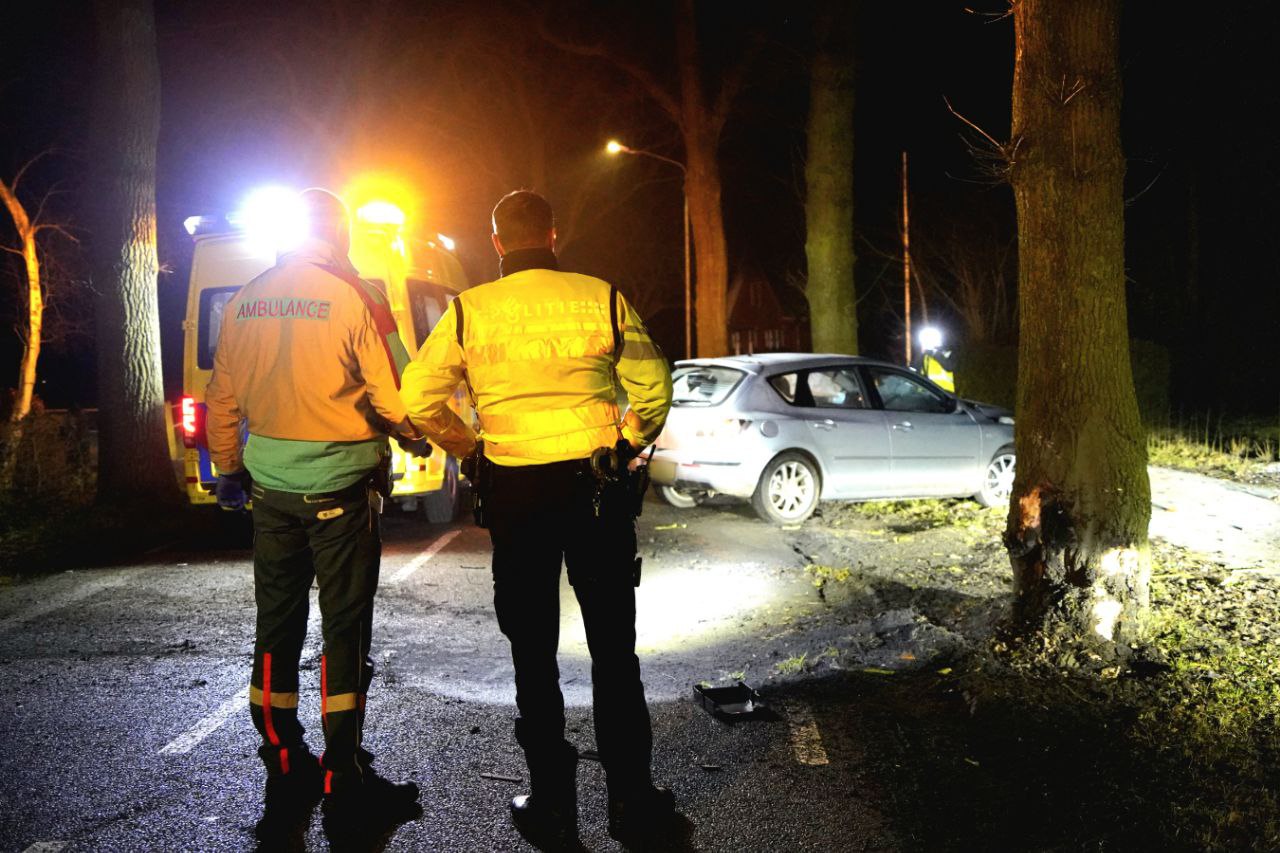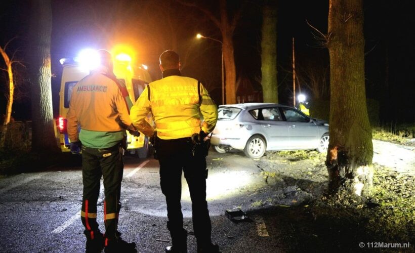 Dinsdagochtend om 04:55 uur is op de Zevenhuisterweg in Nw. Roden een auto tegen een boom gebotst.
