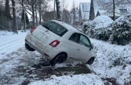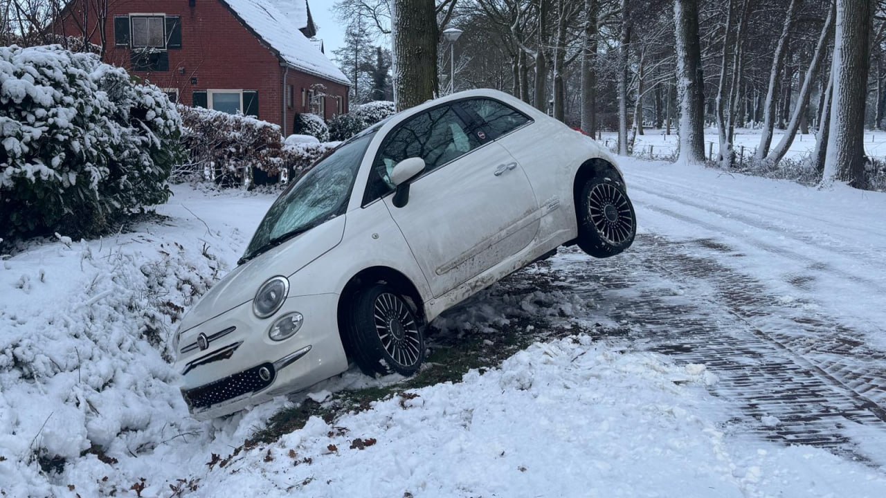 Vrijdagochtend is langs de Oude Velddijk in Peize een personenauto van de weg geraakt en in de naastgelegen sloot terechtgekomen. De winterse omstandigheden zullen zeker een rol hebben gespeeld.