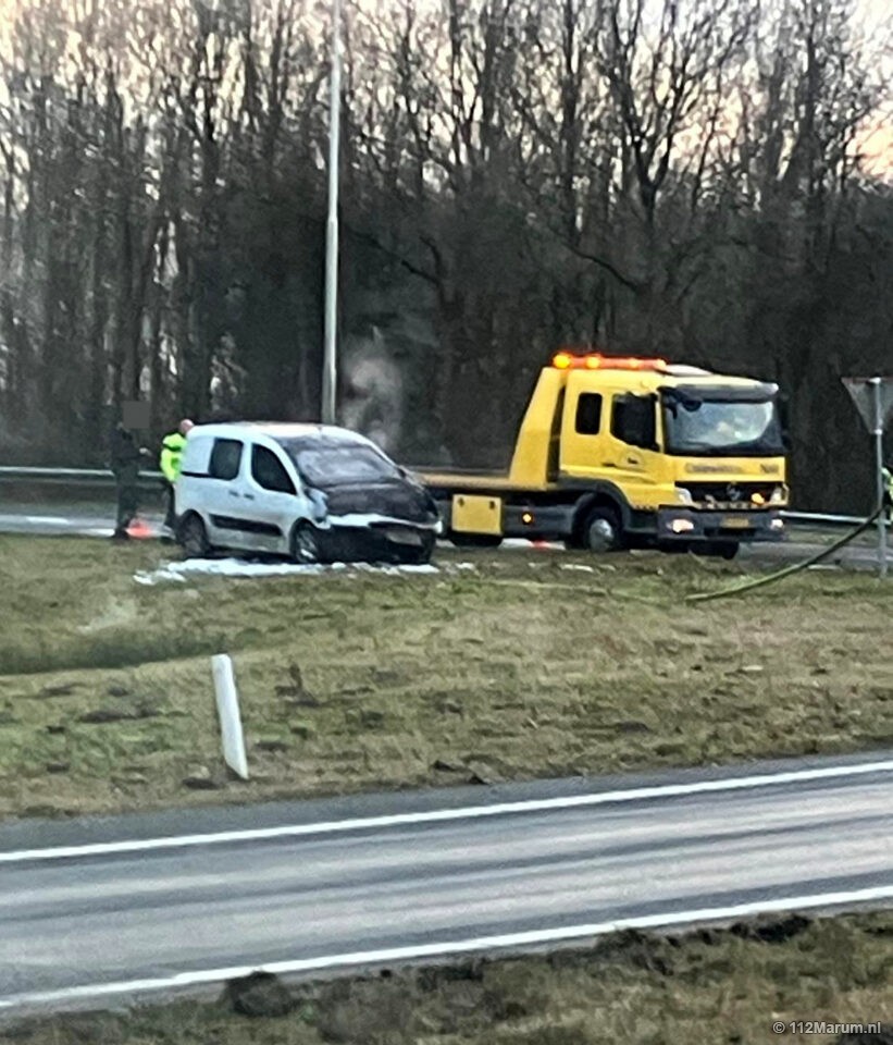 De bestuurder kon de auto nog in de berm parkeren, en veilig uit zijn auto stappen. De brandweer van Surhuisterveen kon niet voorkomen dat de auto bij de brand zwaar beschadigd raakte. Waardoor de brand is ontstaan, is niet bekend.