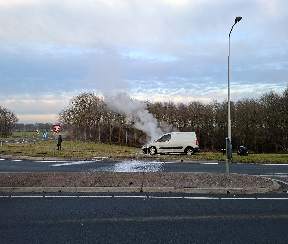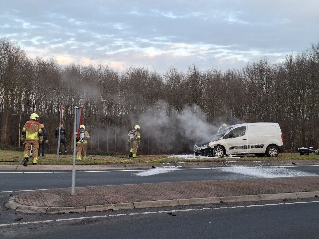 Op de Scheiding bij Drachtstercompagnie is vanmiddag een bestelbus in brand geraakt.