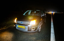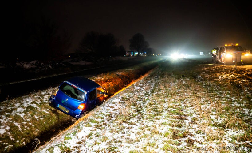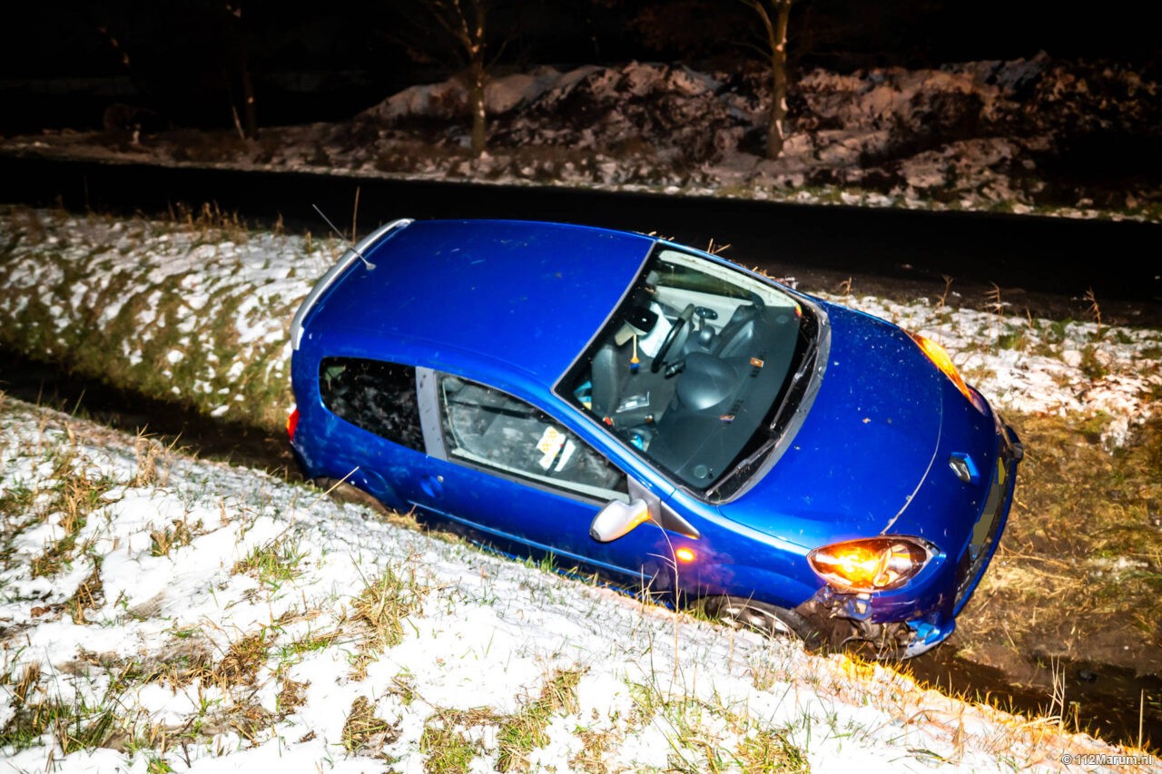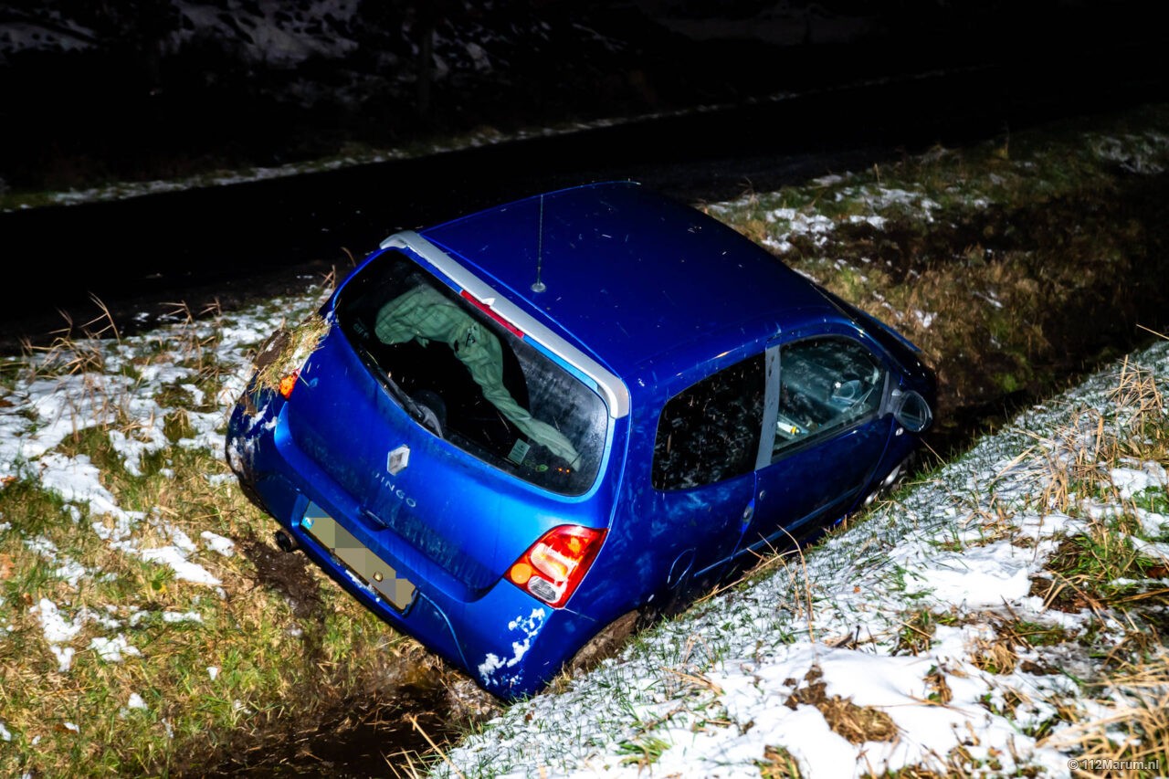 Auto na botsing in de sloot bij Leek