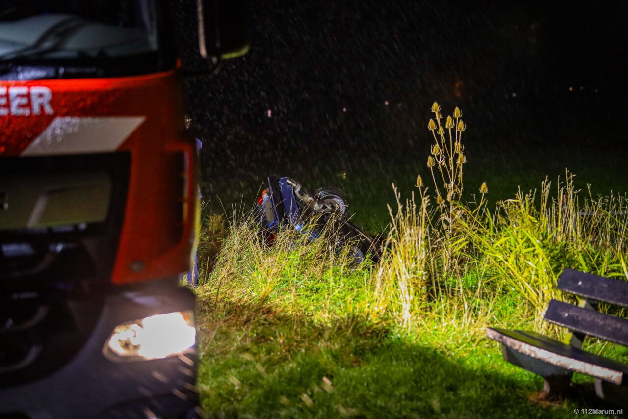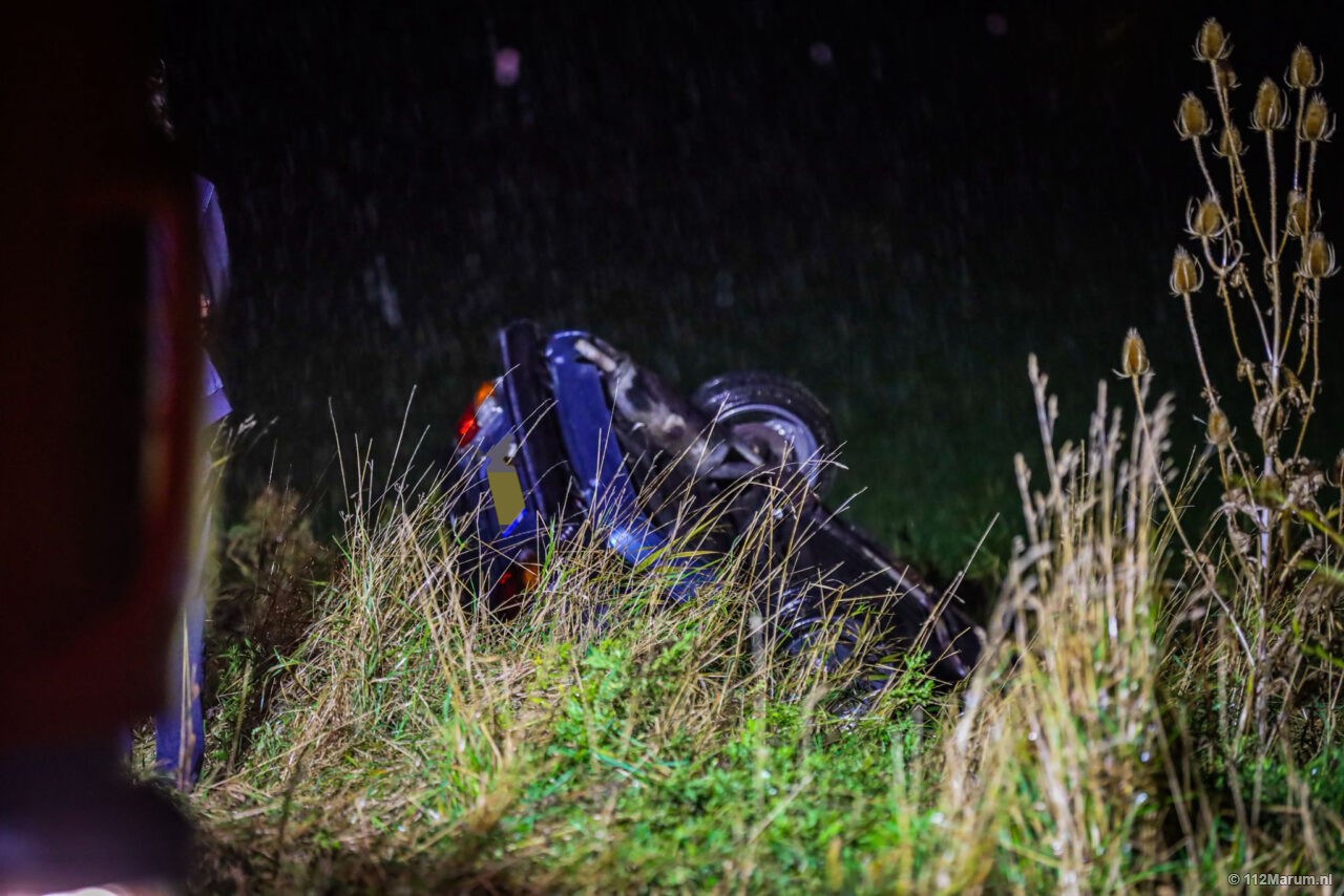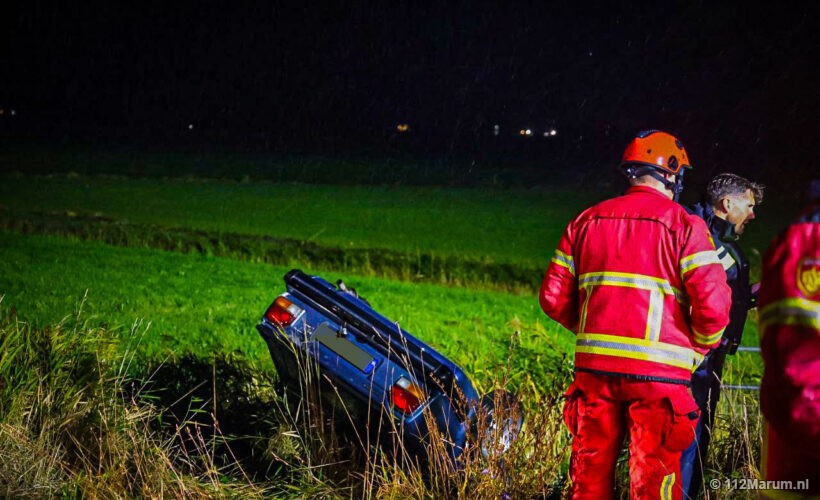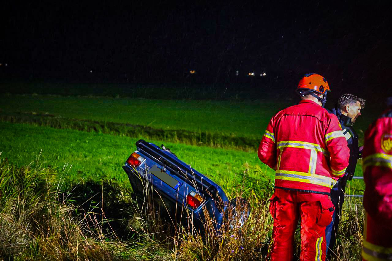 Auto op de kop in sloot bij Den Horn