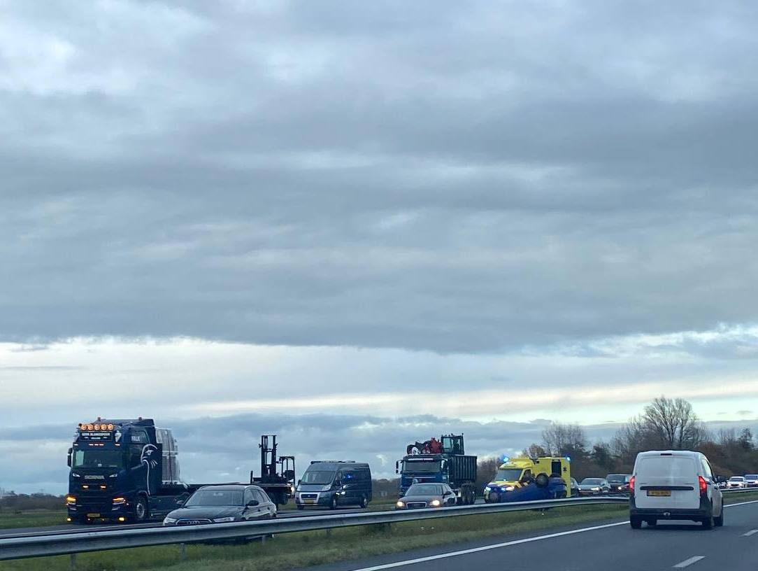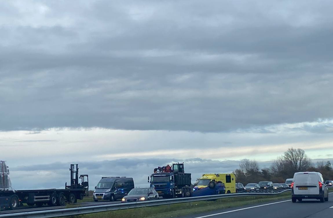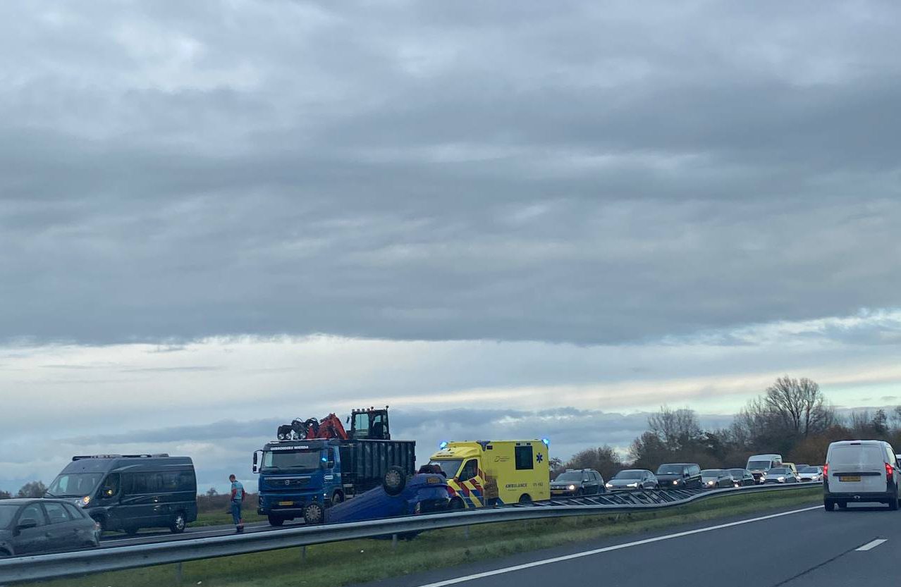 Op de A7 ter hoogte van Nuis in de richting van Friesland is vanmiddag even na drie uur een auto over de kop geslagen.