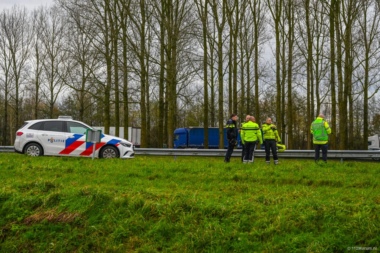Het verkeer kon eerst nog over twee rijbanen langs het ongeval. Voor de afhandeling van het ongeval, werd er een rijbaan afgesloten. De file die ontstond door het ongeval, bedroeg ong 4 km. met een extra reistijd van 40 min.