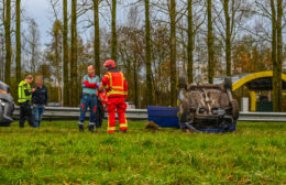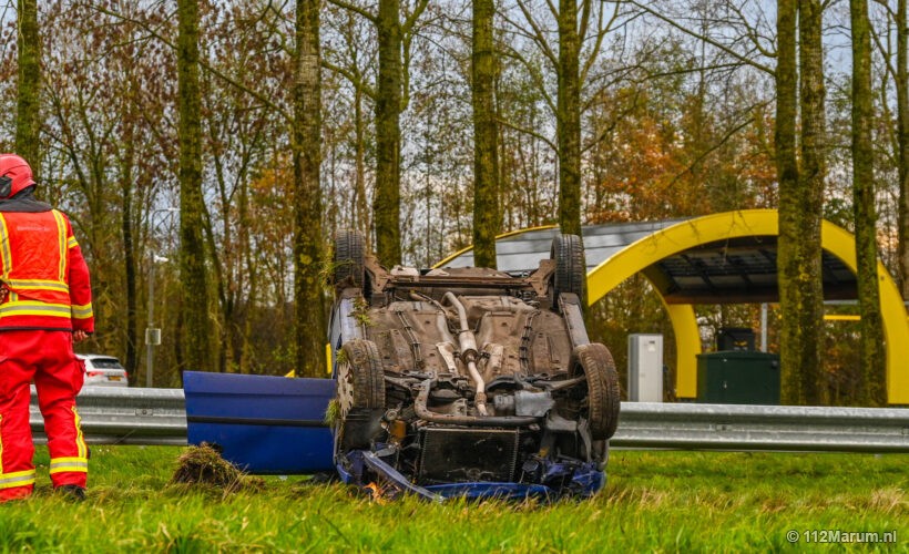 De automobiliste die in de richting van Friesland reed, verloor door nog onbekende oorzaak de macht over het stuur, sloeg over de kop, en kwam vervolgens in de middenberm terecht. Volgens een woordvoerder van de politie ging het om een eenzijdig ongevbal.