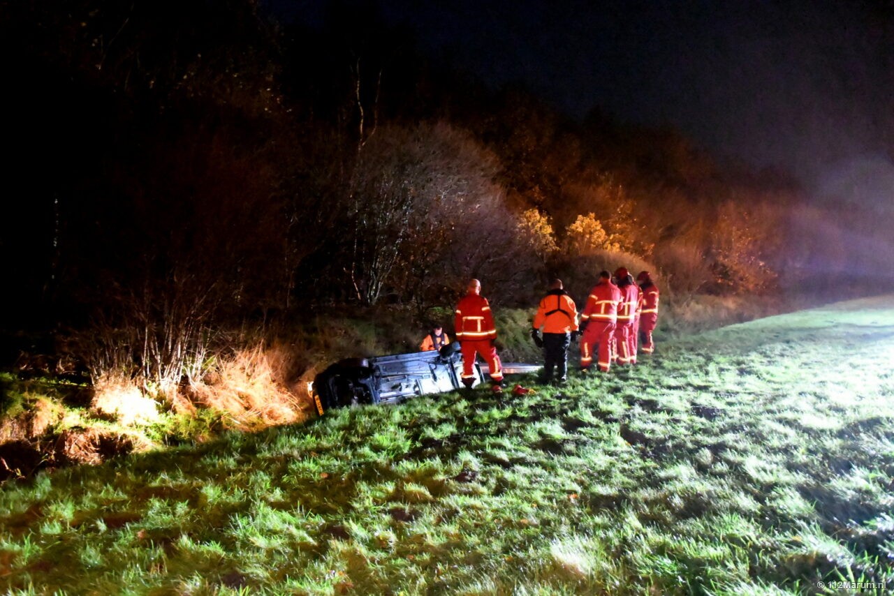 Naast de brandweer van Marum, was er ook een ambu, politie en RWS ter plaatse. De man die als enige in de auto zat, is ter plaatse onderzocht, en later voor verdere behandeling overgebracht naar ziekenhuis Nij Smellinghe in Drachten.