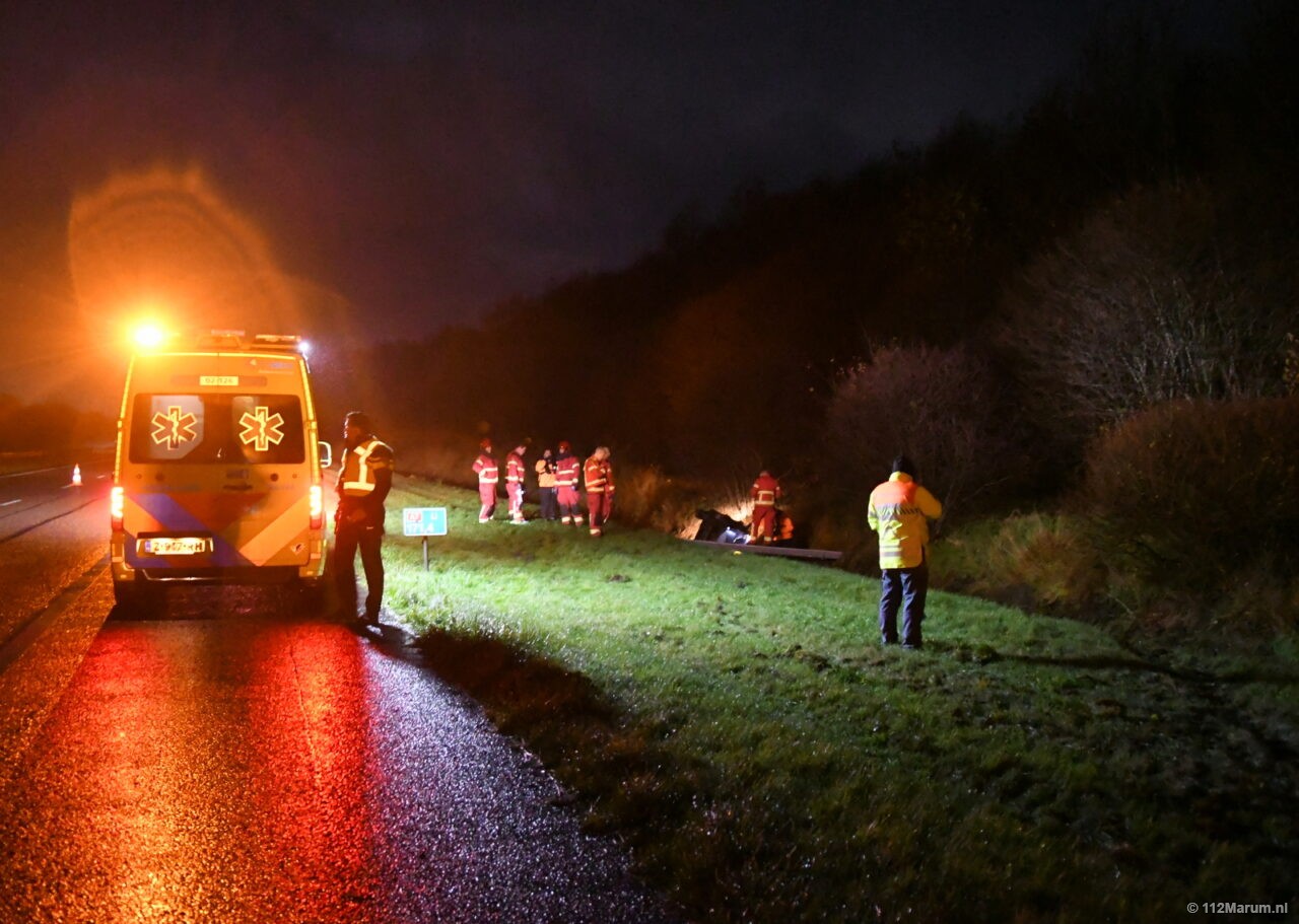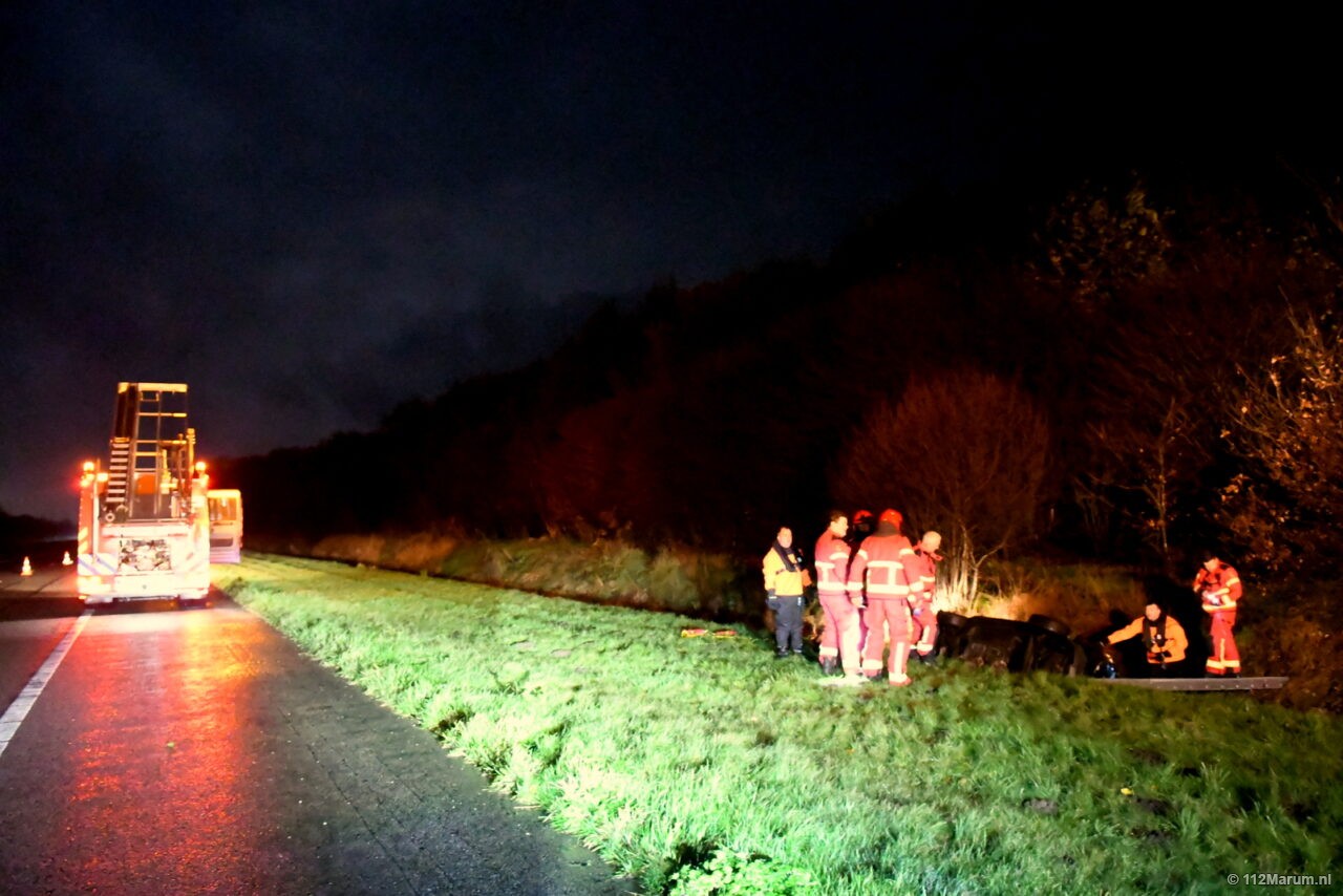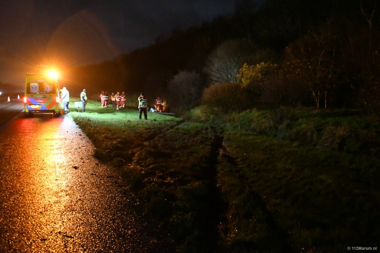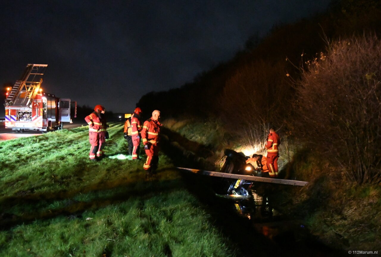Bij een eenzijdig ongeval op de A7 ter hoogte van Marum is vanmorgen even voor zeven uur een auto te water geraakt.