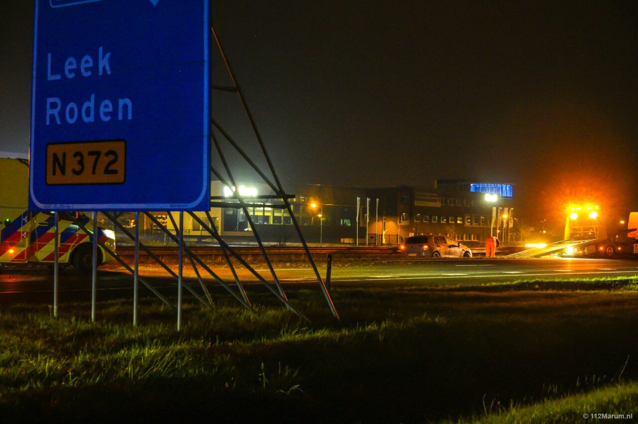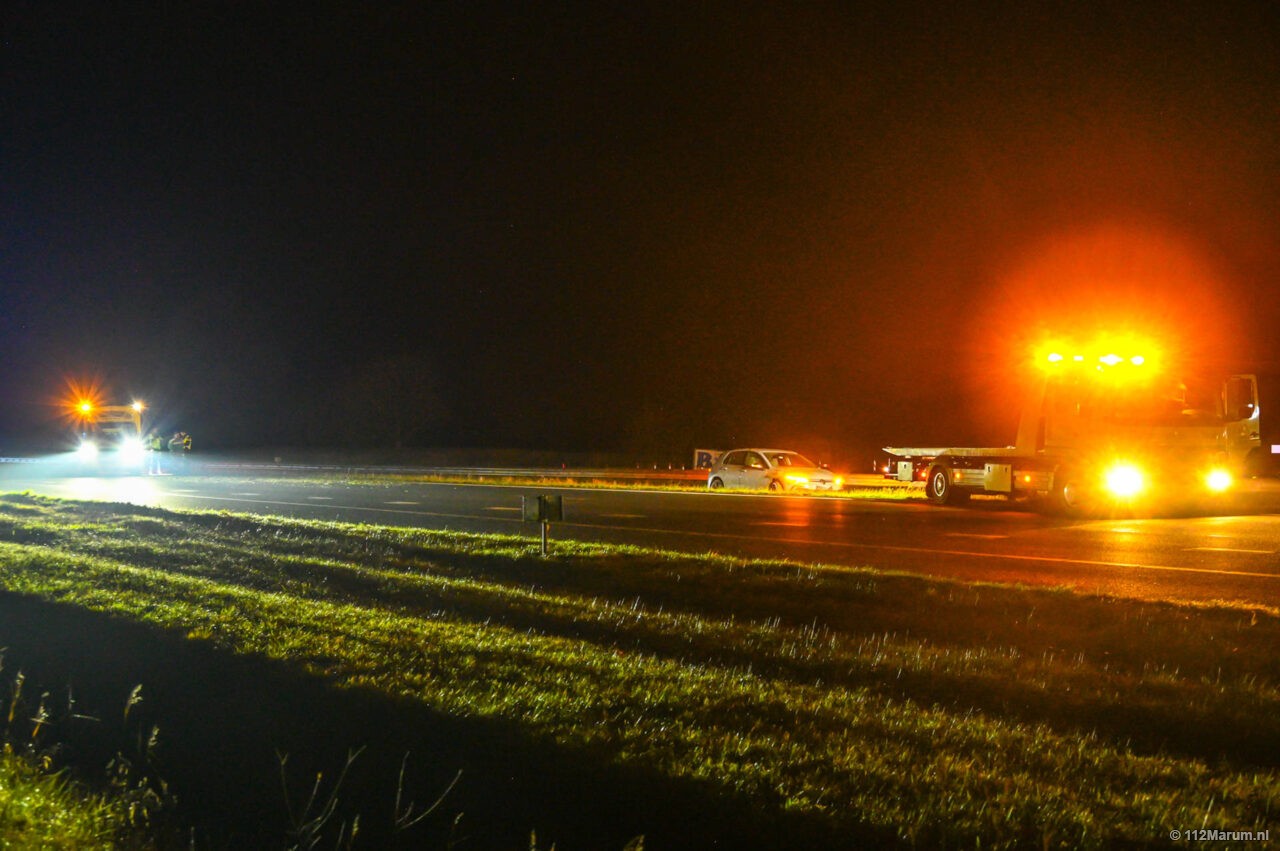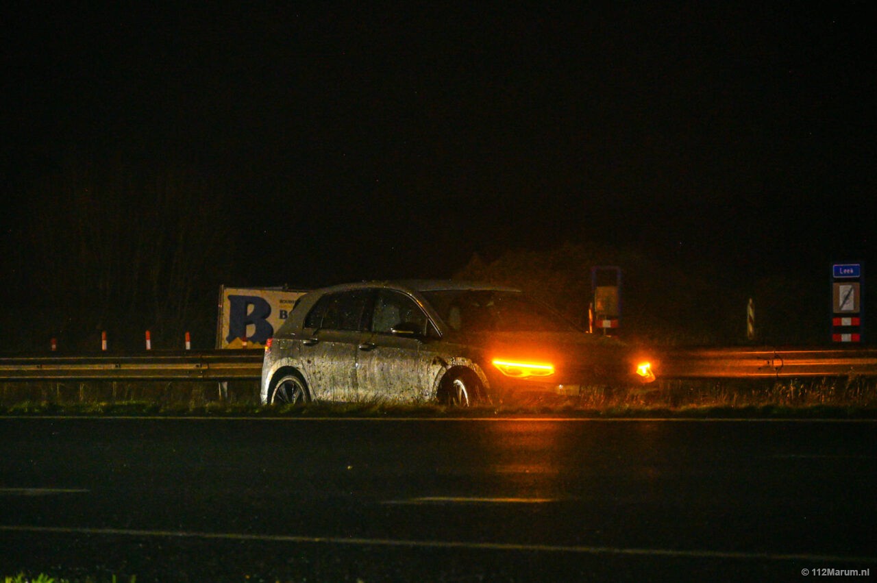 Een auto raakte de afgelopen nacht op de A7 bij Midwolde van de weg. Het voertuig kwam in de middenberm terecht en beschadigde daarbij de vangrail.