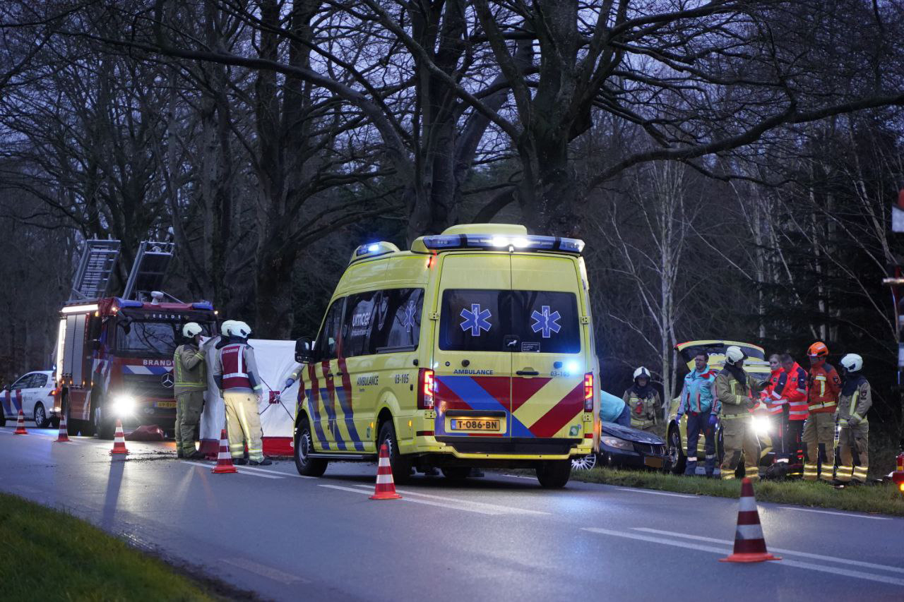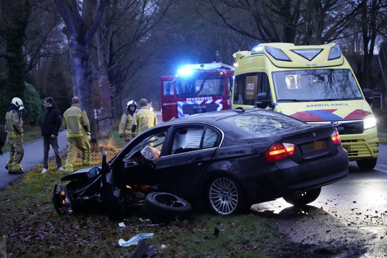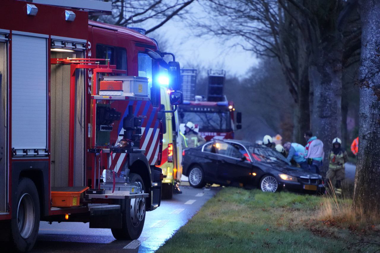 Politie, meerdere brandweerwagens, ambulances én het Mobiel Medisch Team kwamen met spoed ter plaatse. Een automobilist raakte door nog onbekende oorzaak van de weg en botste frontaal tegen een boom. Het slachtoffer zit nog in het voertuig en werd door de brandweer bevrijd. Door de brandweer werden zichtschermen geplaatst. Verkeer kon over één rijstrook langs het incident rijden. De bestuurder is later voor verdere behandeling overgebracht naar een ziekenhuis.