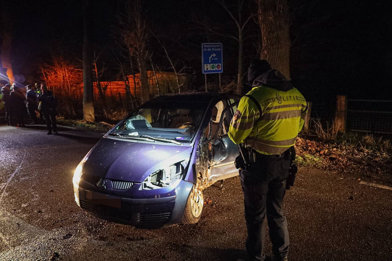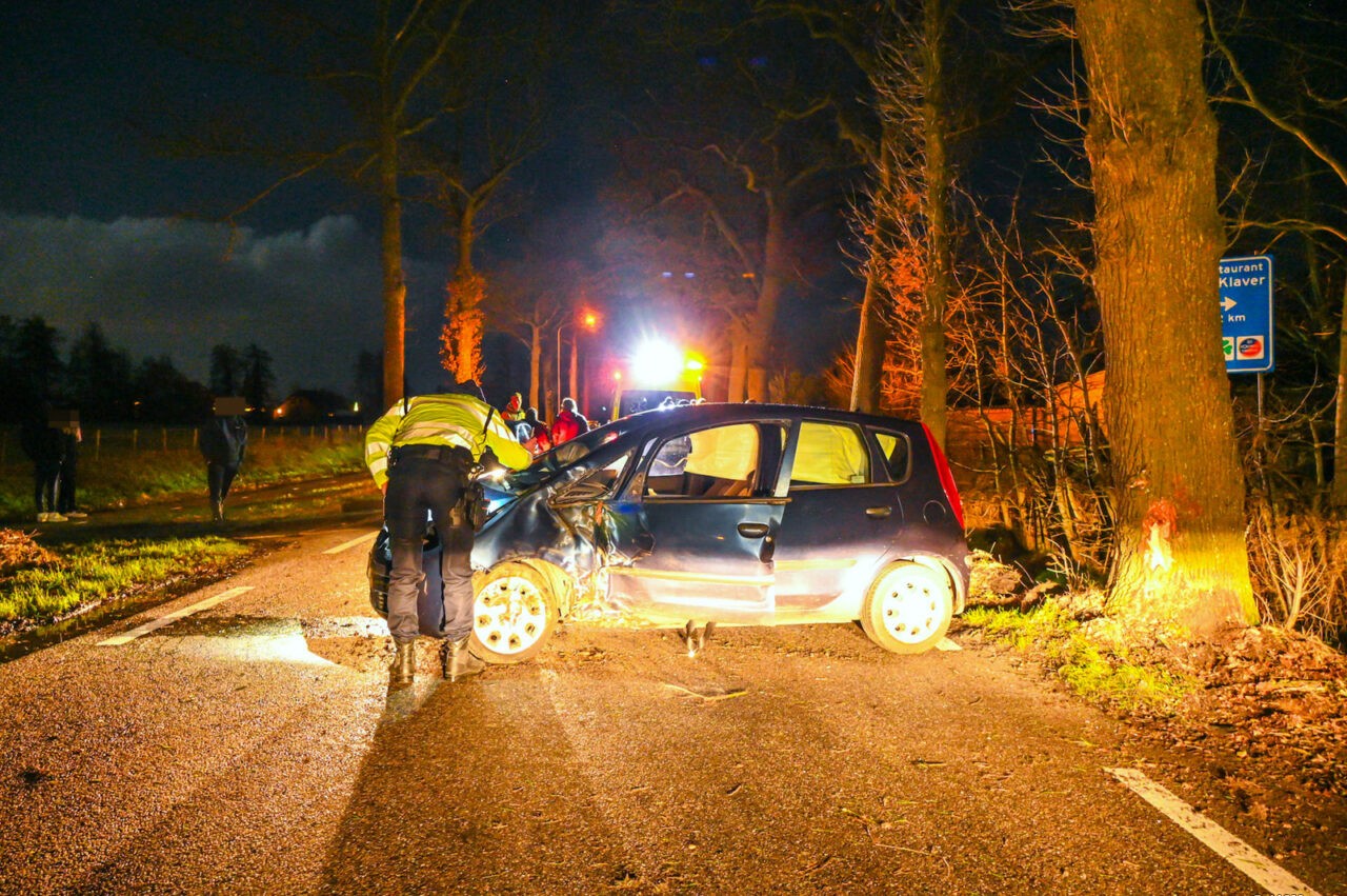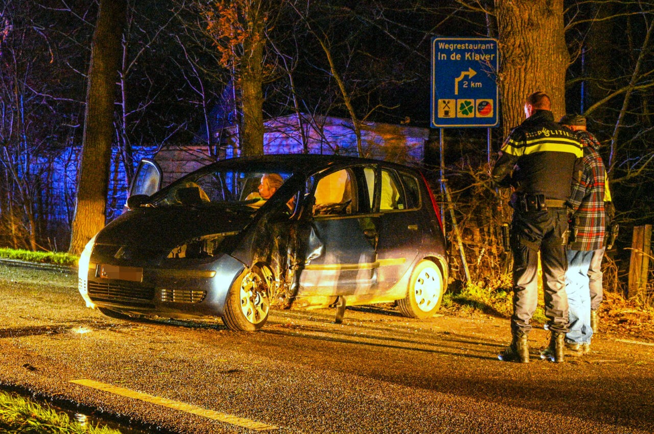 De auto raakte door nog onbekende oorzaak uit de bocht, spinde en botste tegen een boom. Het voertuig kwam daarna weer op de weg tot stilstand.