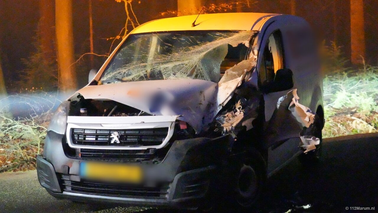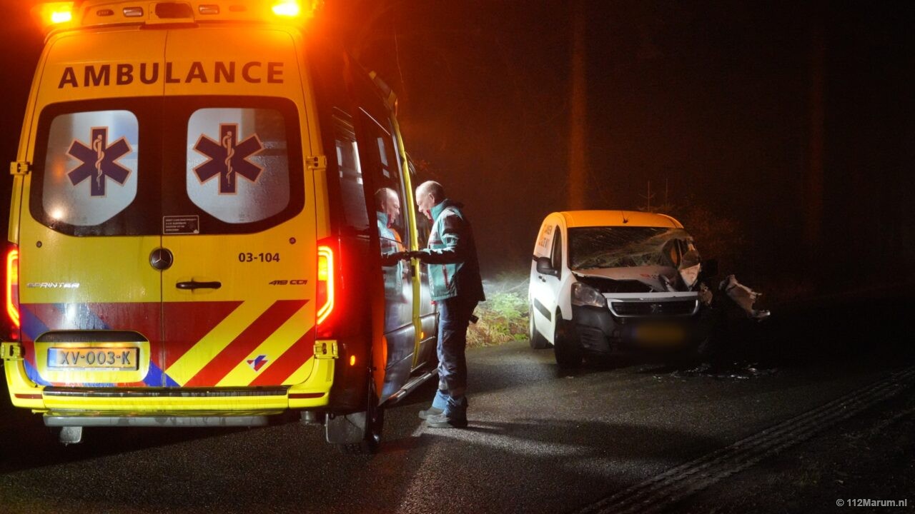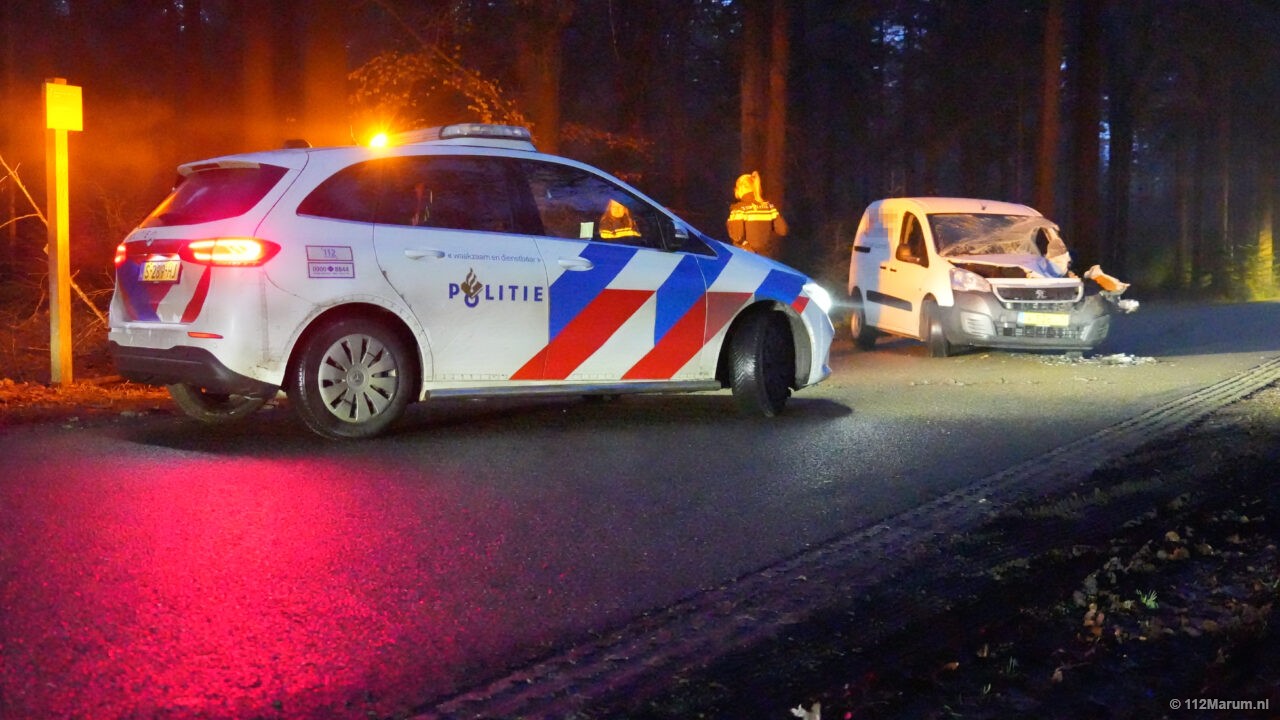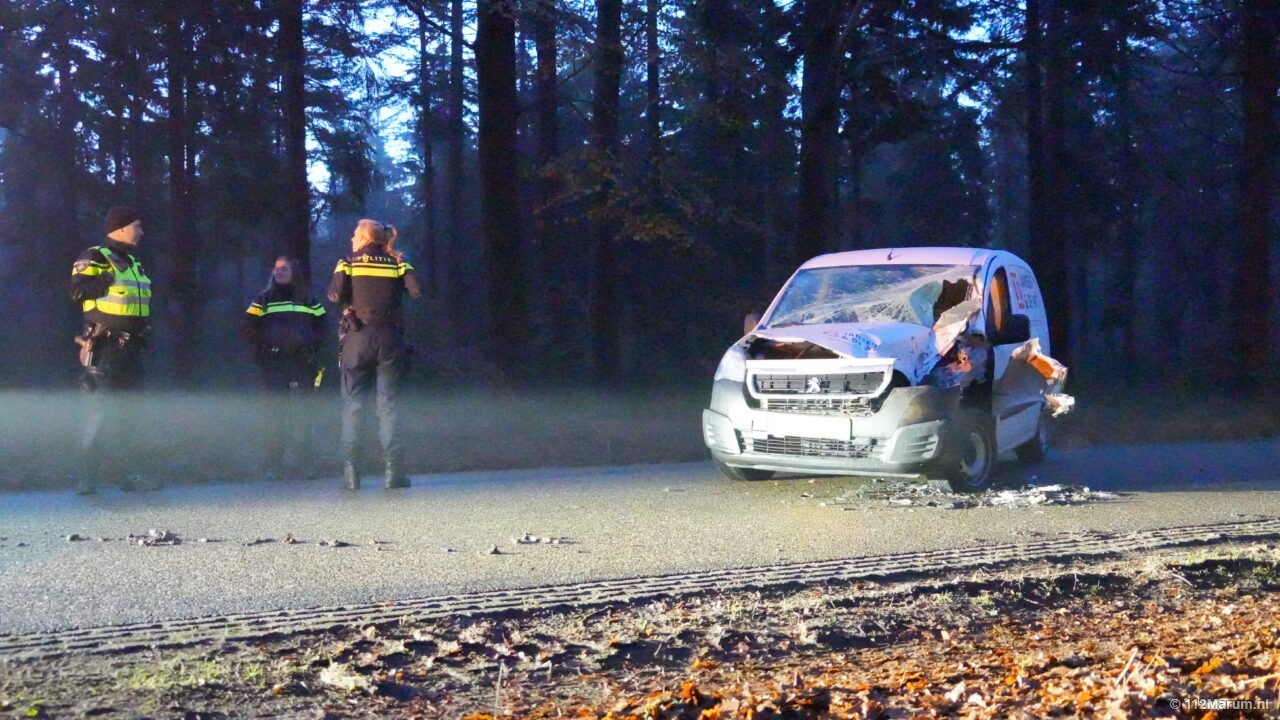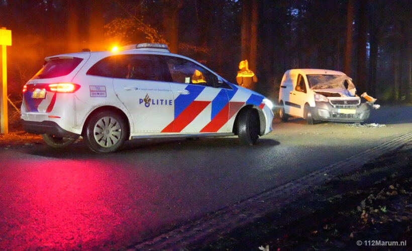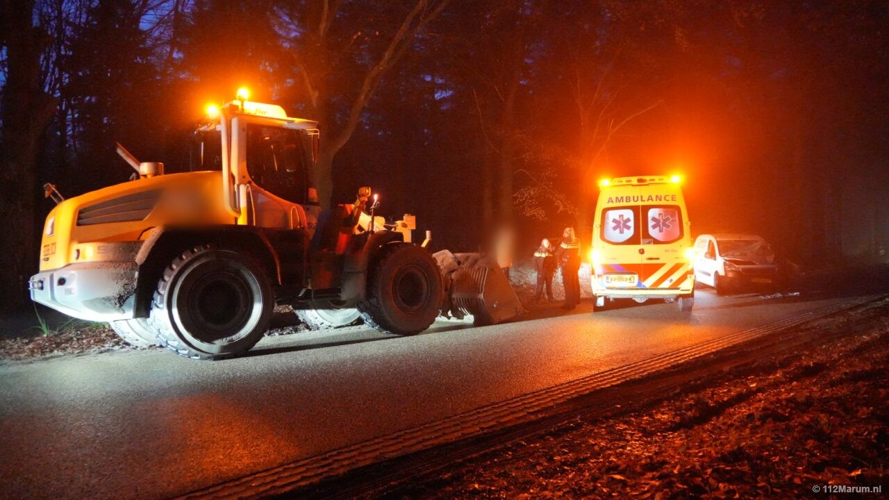 Vanmorgen om 6.40 uur is een automobilist met zijn auto tegen een shovel gebotst op de Bankenbosweg in Veenhuizen.