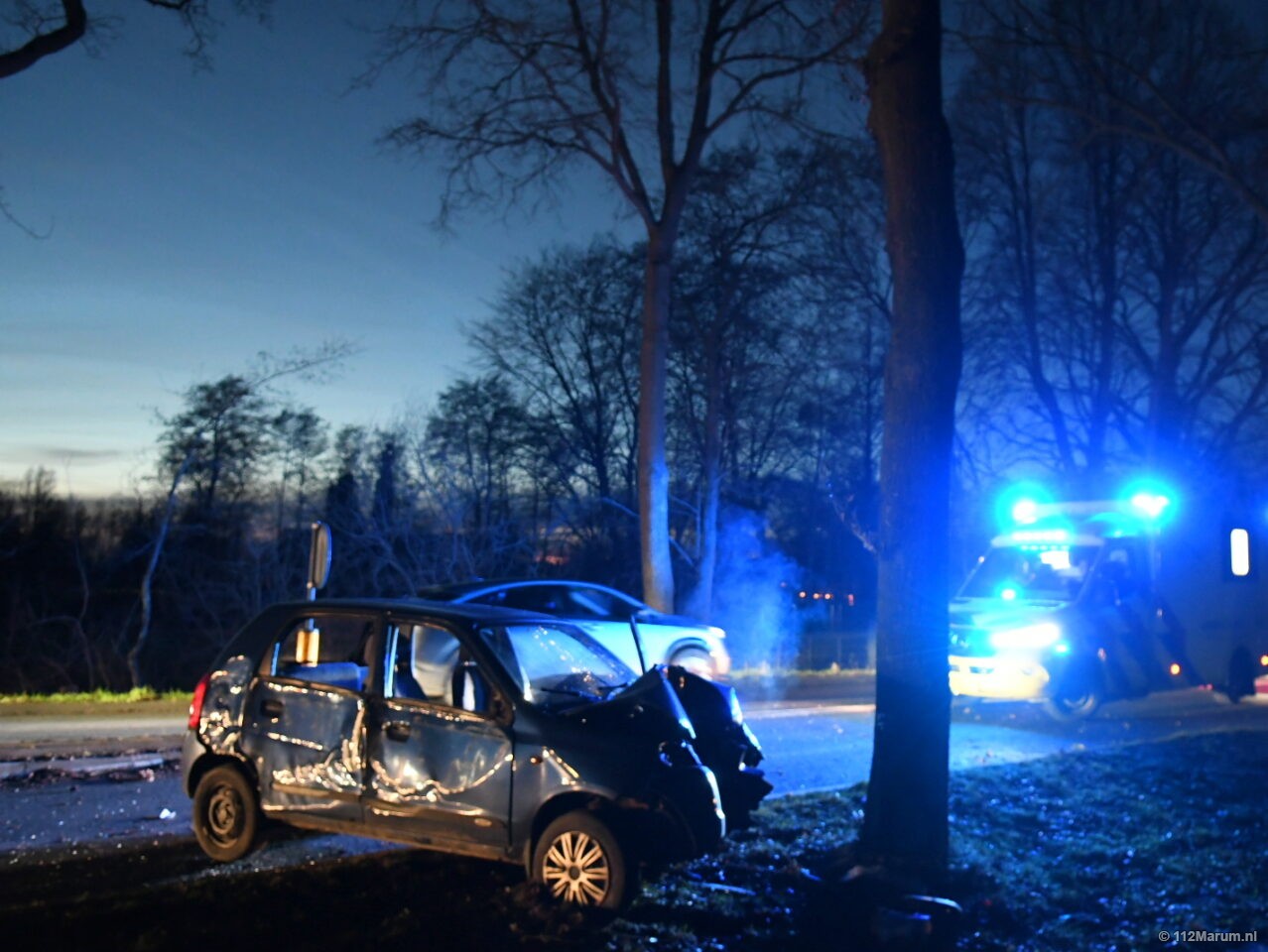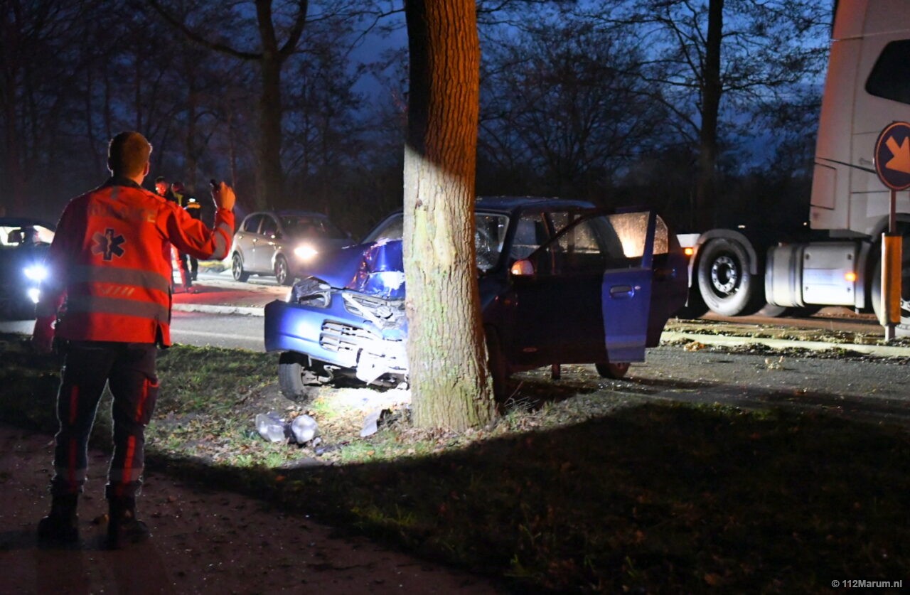 De bestuurder raakte door onbekende oorzaak de macht over het stuur kwijt in de slinger in de Noorderweg (980). De auto kwam tegen een boom tot stilstand. Ter plaatse gekomen ambulancepersoneel hebben de bestuurder onderzocht, en later met urgentie 1 overgebracht naar een ziekenhuis. Hoe het ongeval kon gebeuren, is niet bekend.