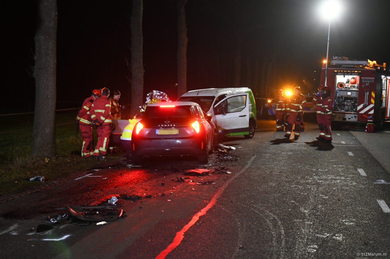 De bestuurder van de Mini zat bij aankomst van de hulpdiensten al naast zijn auto. De bestuurder van de andere auto moest door de brandweer van Marum uit de auto auto worden bevrijd. Ambulancepersoneel hebben de twee gestabiliseerd en later met onbekend letsel over gebracht naar het UMCG in Groningen. Omdat de situatie zich in eerste instantie ernstig liet aanzien, werd ook het MMT gealarmeerd.