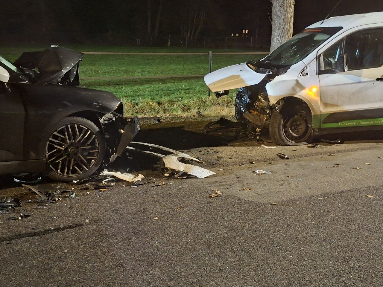 Bij een frontale aanrijding op de Boerakkerweg (N388) zijn vanavond twee auto’s zwaar beschadigd geraakt.