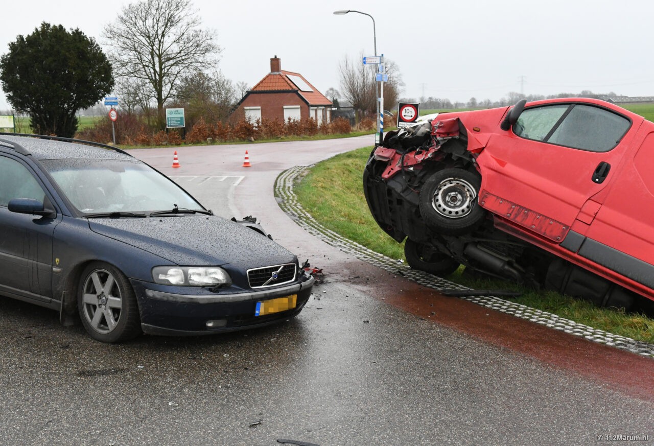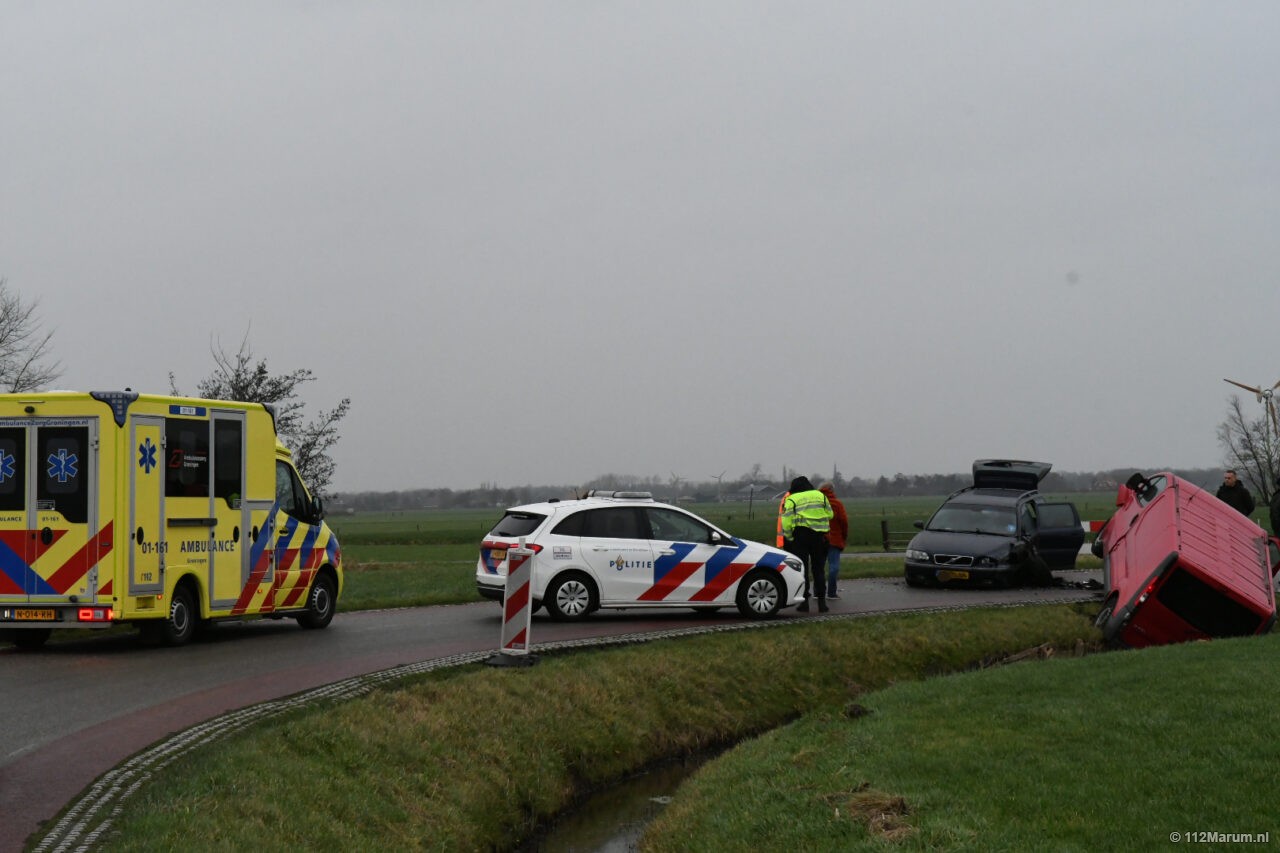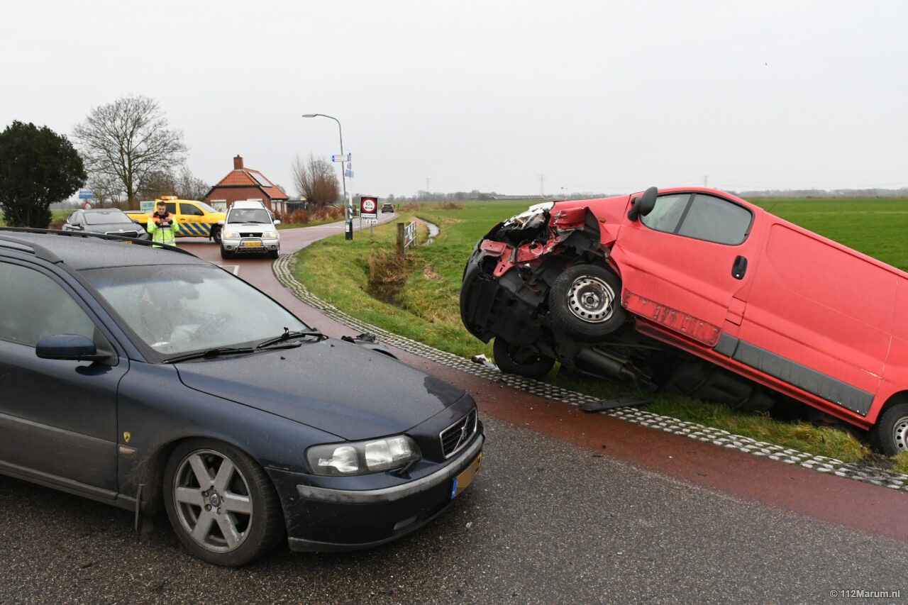 Bij de aanrijding kwam het busje achterwaarts in de sloot terecht, de andere auto kwam tot stilstand op de rijbaan. De bestuurders van de voertuigen, twee mannen uit de gem. Westerkwartier, zijn onderzocht door ambulancepersoneel. Vervoer naar een ziekenhuis bleek niet noodzakelijk.