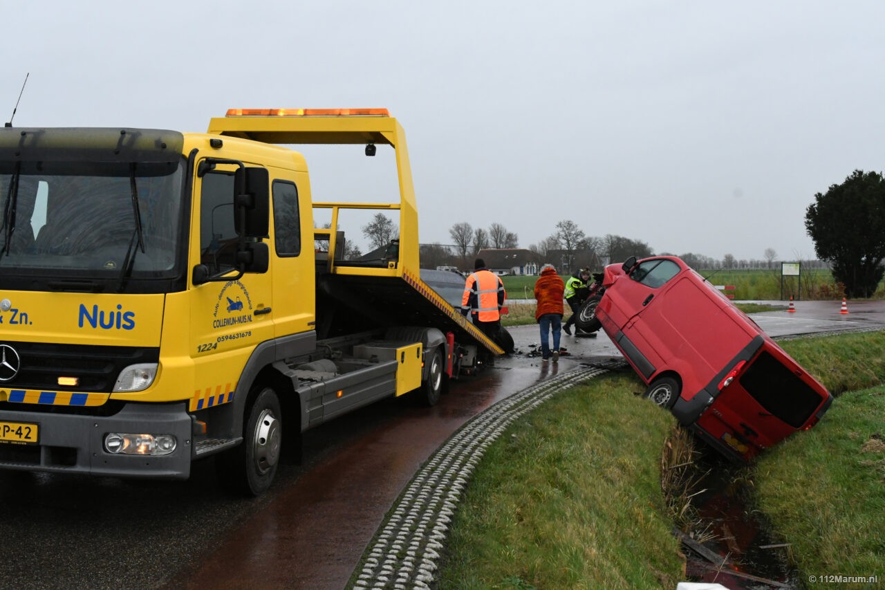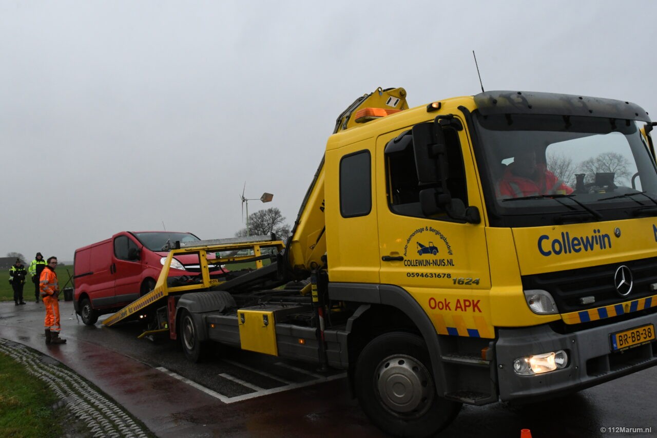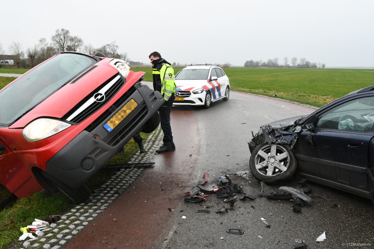 Bij de aanrijding kwam het busje achterwaarts in de sloot terecht, de andere auto kwam tot stilstand op de rijbaan. De bestuurders van de voertuigen, twee mannen uit de gem. Westerkwartier, zijn onderzocht door ambulancepersoneel. Vervoer naar een ziekenhuis bleek niet noodzakelijk.