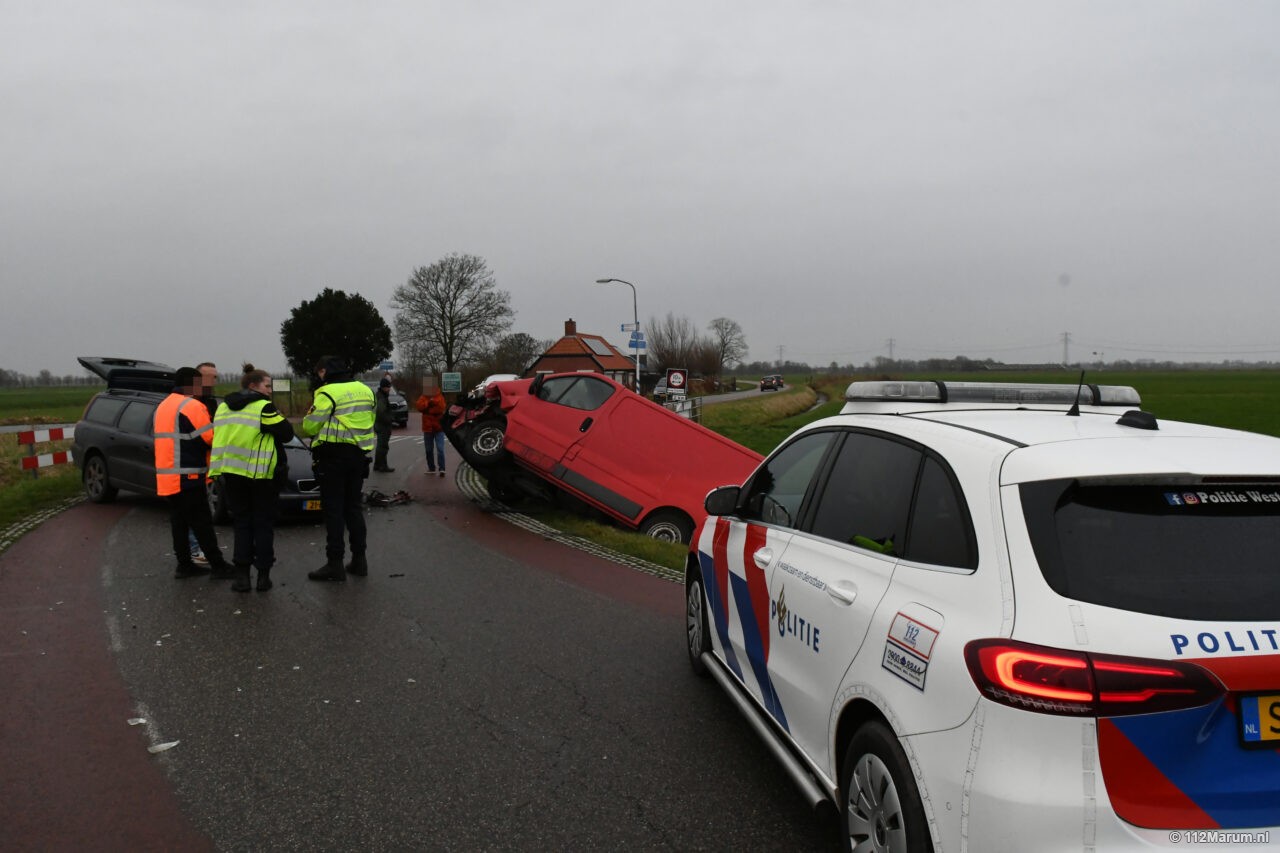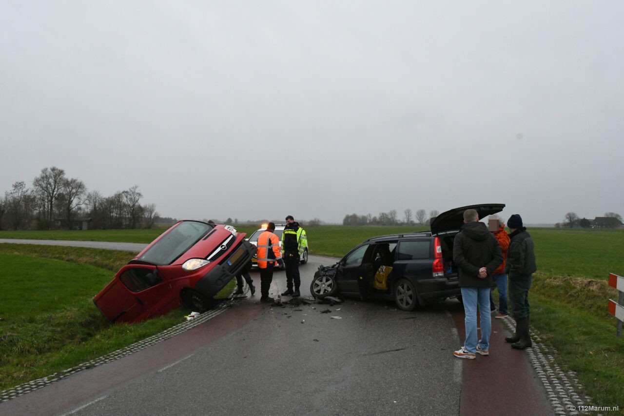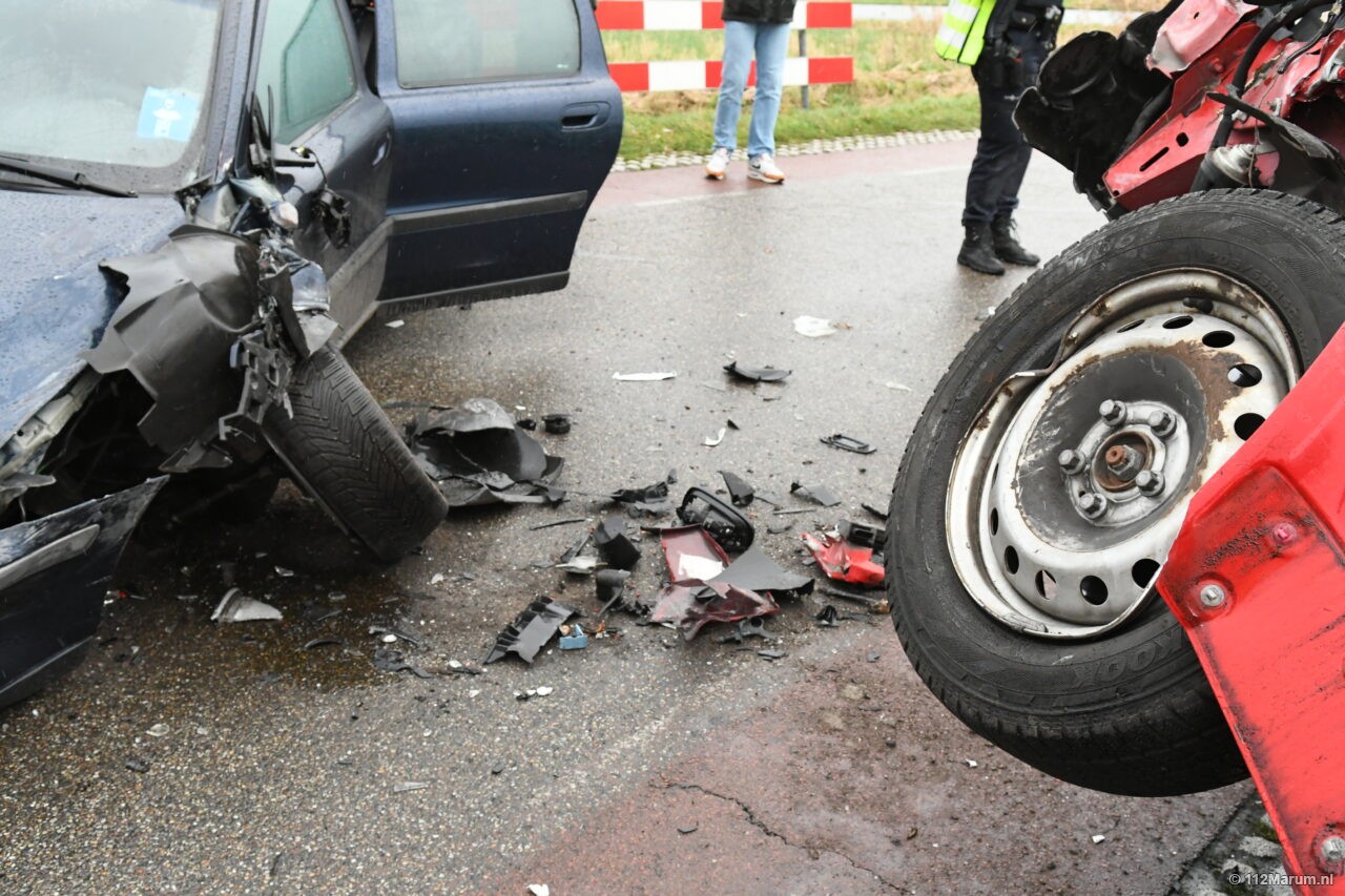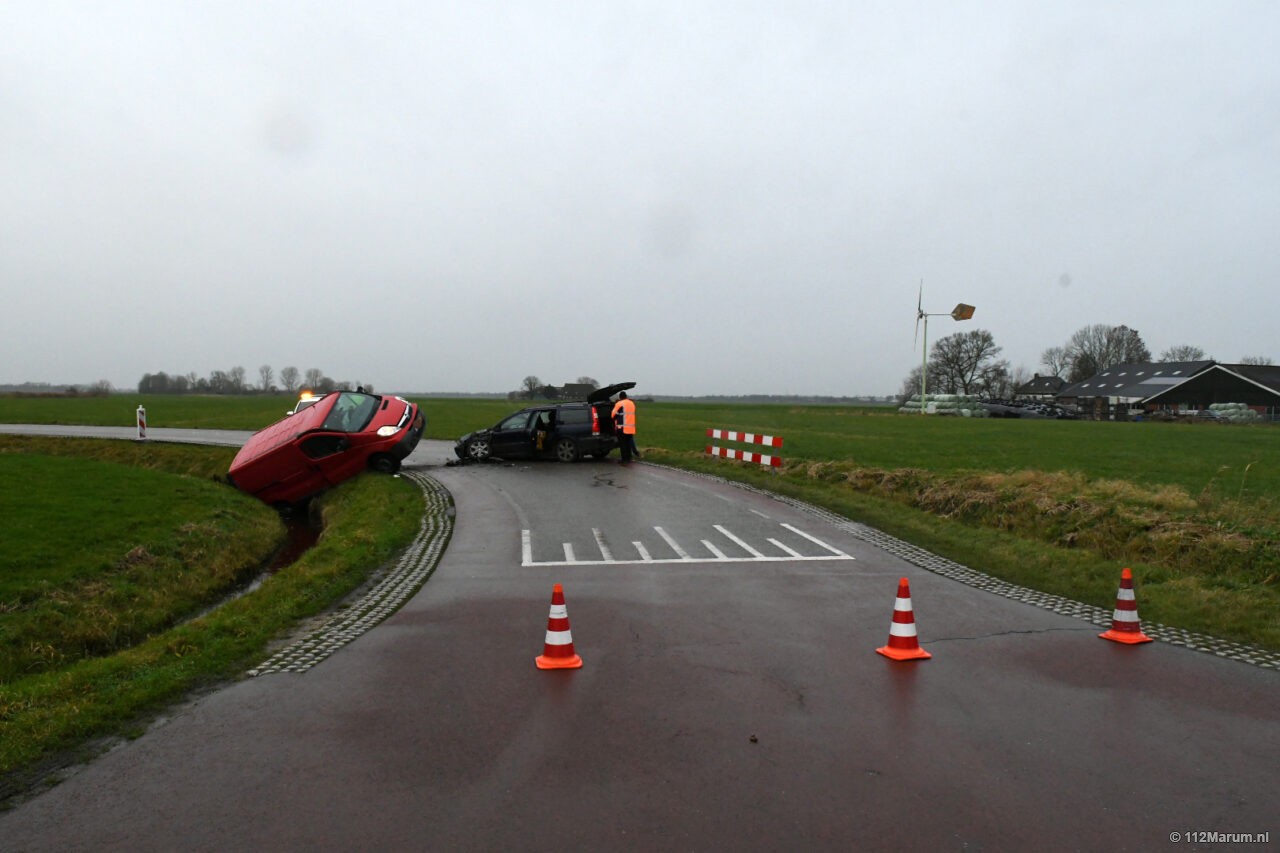 Bij een aanrijding op de Fanerweg (N978) / Dorpsstraat in Enumatil zijn vanmorgen twee auto’s met elkaar in botsing gekomen.
