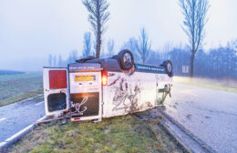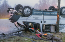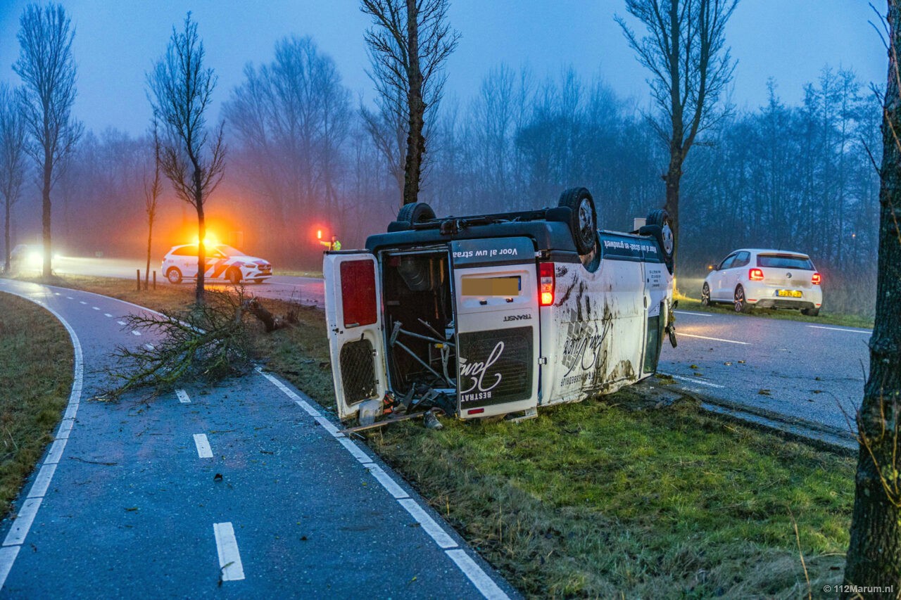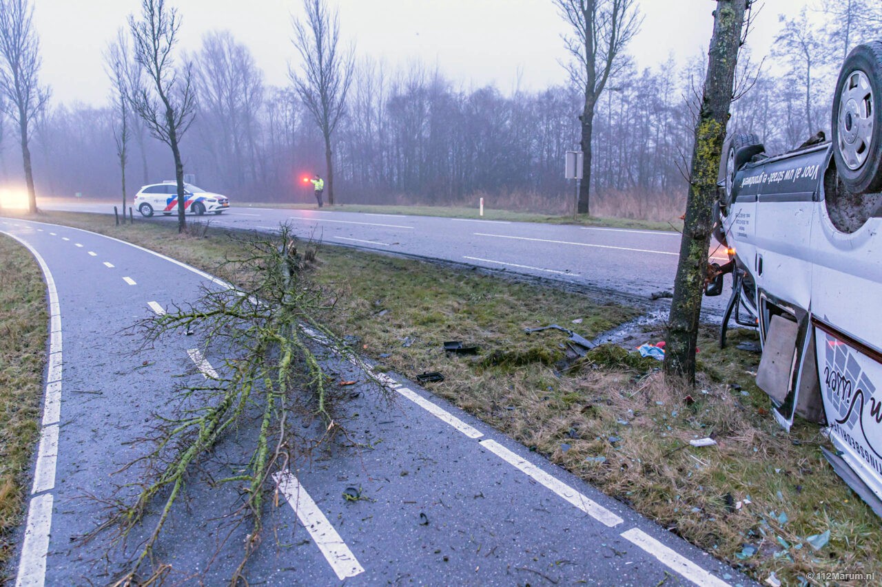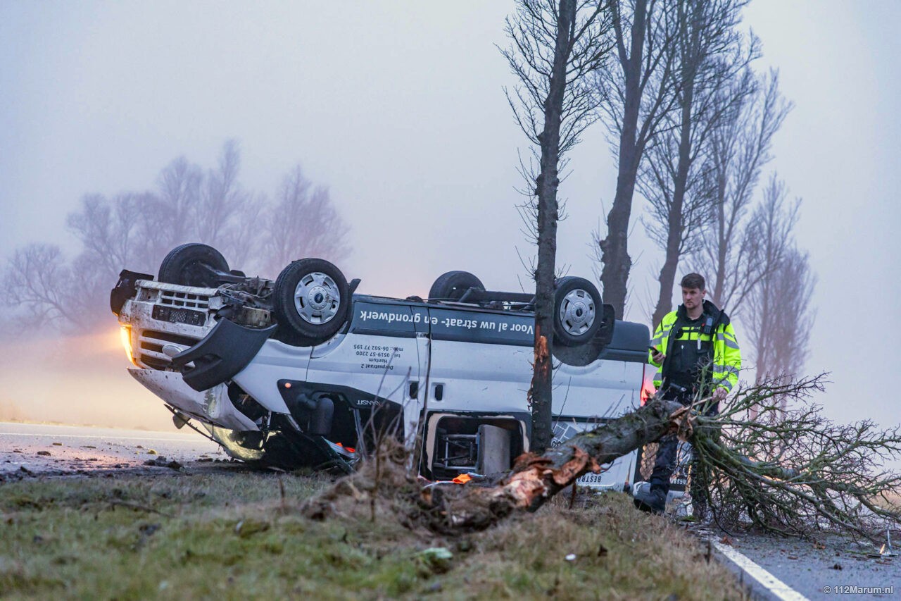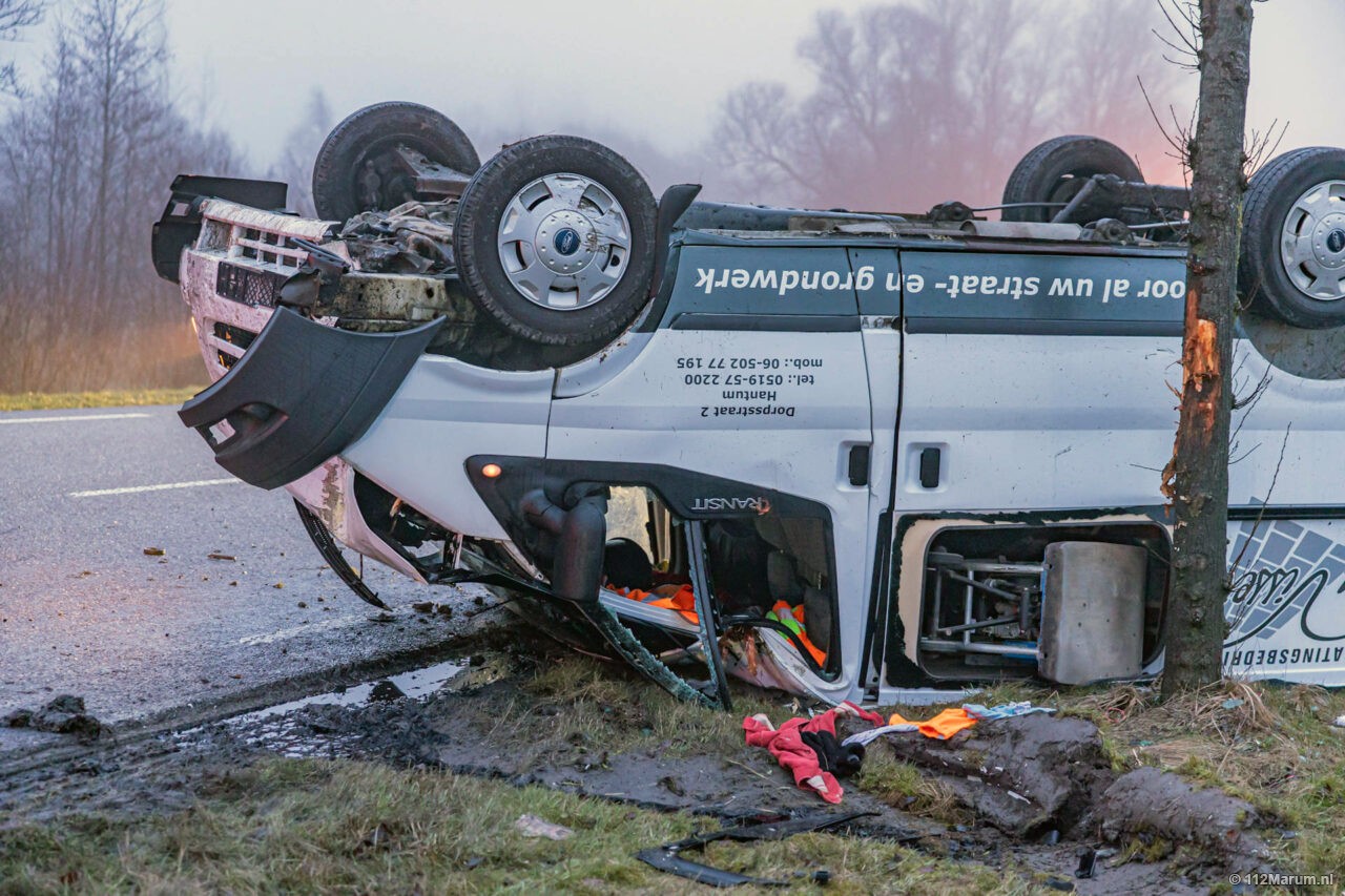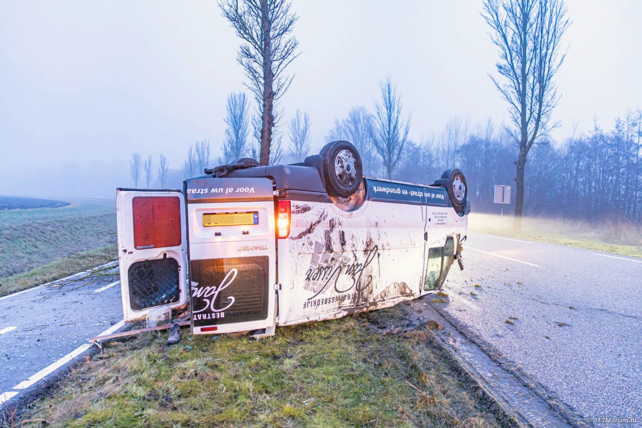 Bedrijfsauto op de kop bij Grijpskerk