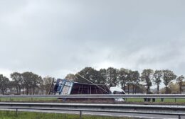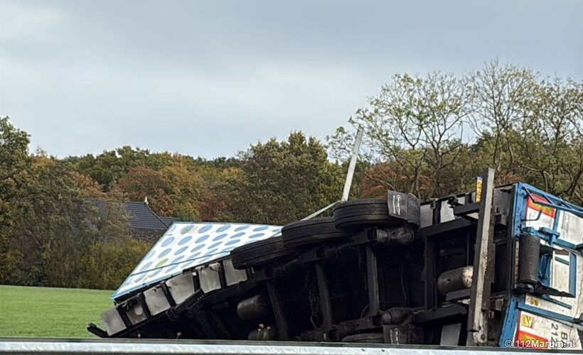 Berging gekantelde vrachtwagen neemt geruime tijd in beslag Video
