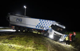 Een vrachtwagen geladen met aardappelen is zaterdag van de weg geraakt op de N381 bij Oosterwolde.
