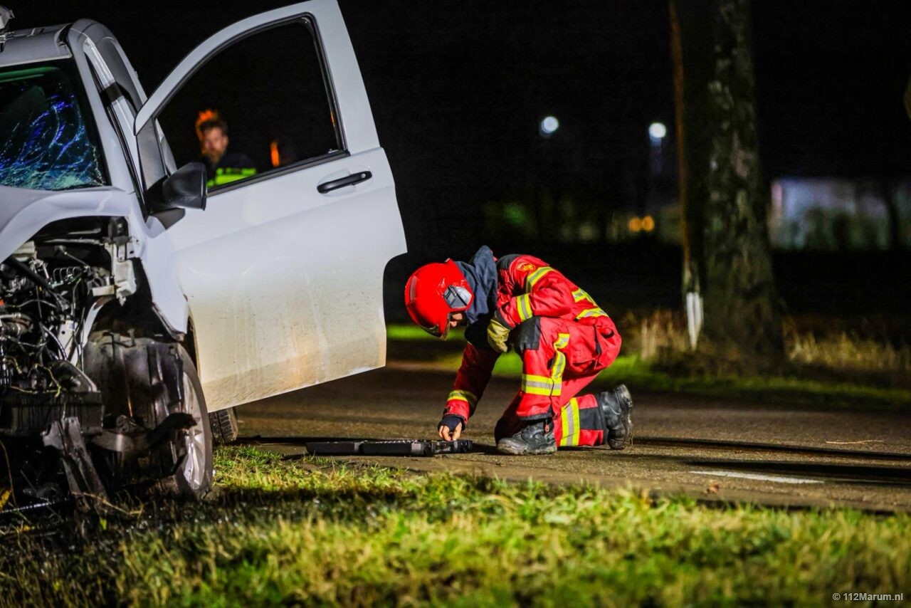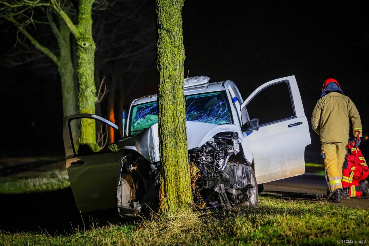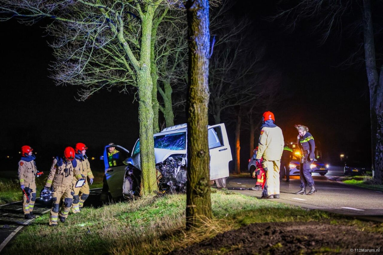 Een bestelbusje is maandagavond door onbekende oorzaak frontaal op een boom gebotst op de Sietse Veldstraweg (N983) in Den Ham. Hierbij raakte een persoon, de bestuurder van het bestelbusje gewond.