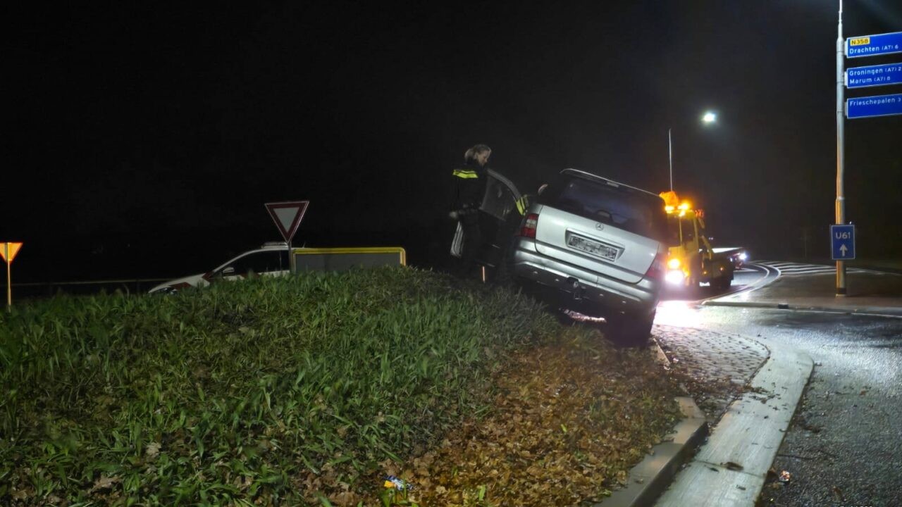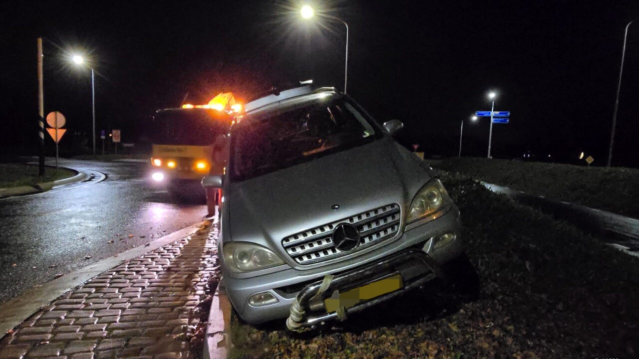 Bergingsbedrijf Collewijn is ingeschakeld om het voertuig van de rotonde te verwijderen en af te voeren.