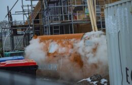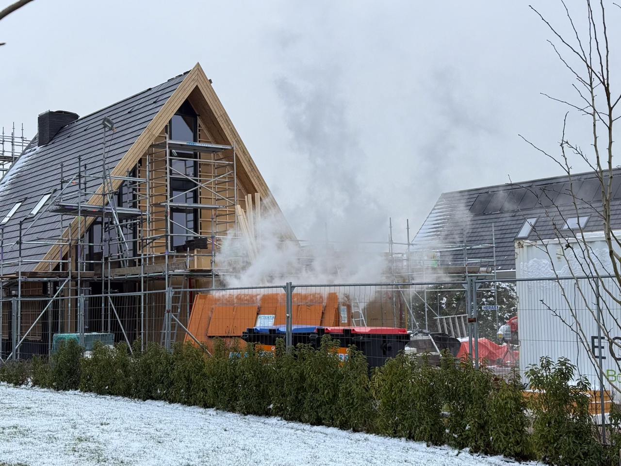 Op een bouwplaats bij een in aanbouw zijnde woning was in een container voor sloopafval brand ontstaan. Nadat de dikste vlammen waren geblust, heeft de brandweer daarna de container vol laten lopen met water. Tijdens de brand was er een flinke rookontwikkeling.