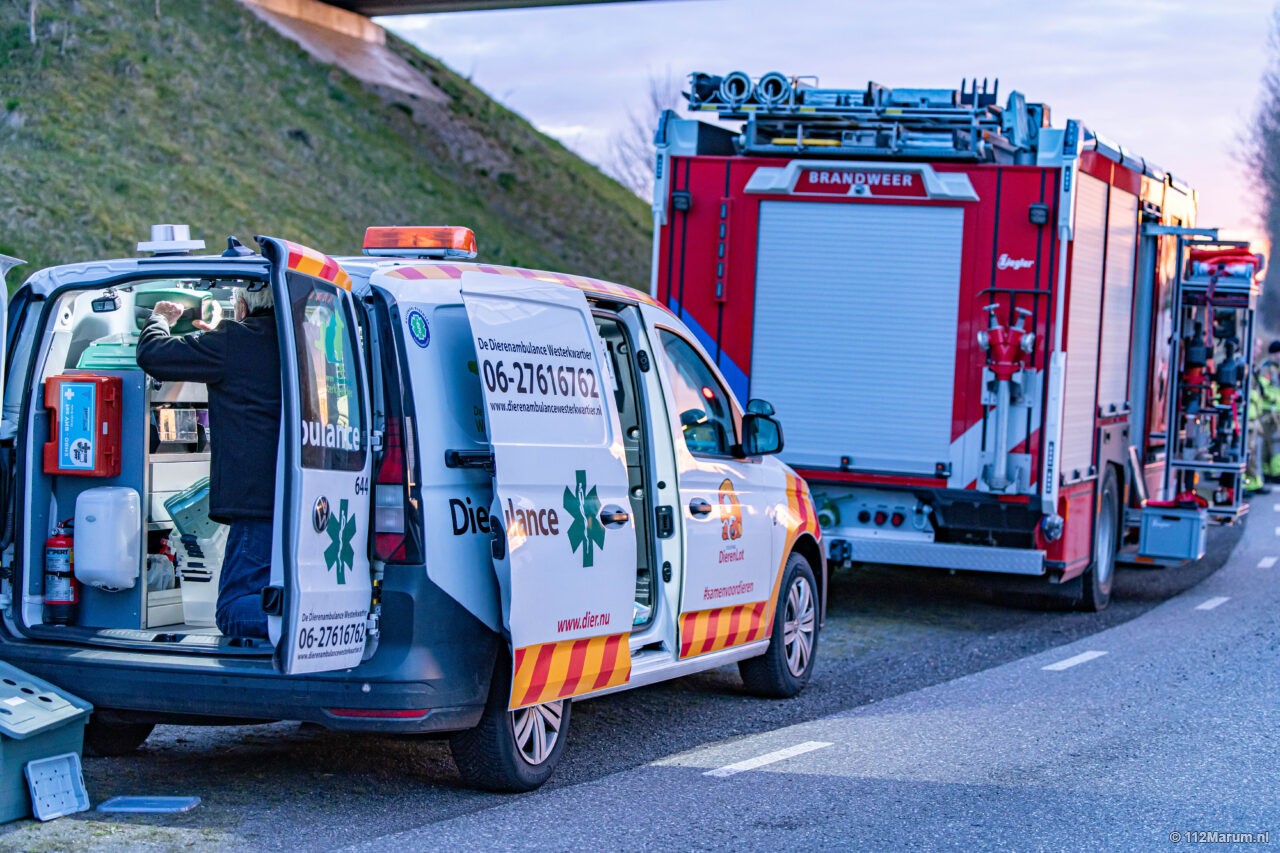 Brandweer redt ree uit van Starkenborghkanaal