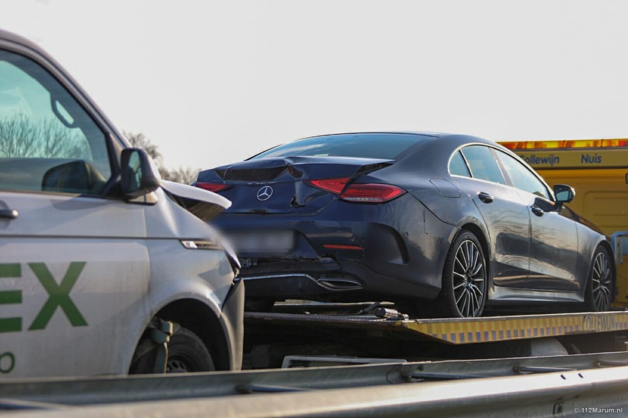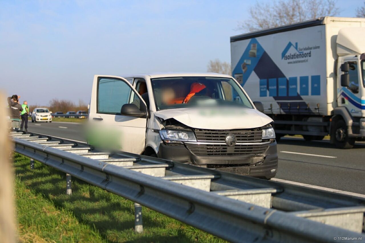 Een bestelbus en een personenauto zijn donderdagmiddag zwaar beschadigd geraakt bij een botsing op de A7.