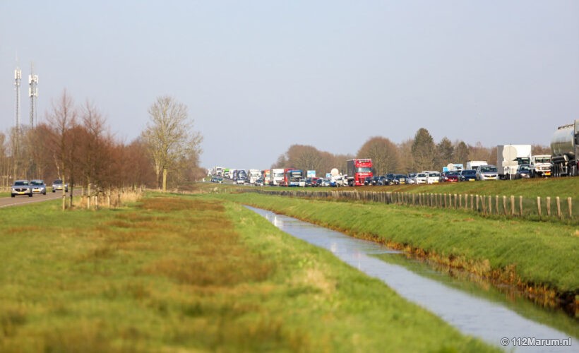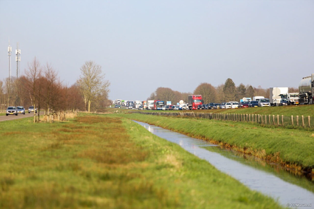 De kop-staartbotsing vond rond 16:15 uur plaats ter hoogte van Marum, in de richting van Drachten. Door een nog onbekende oorzaak botste een bestelbus achterop een Mercedes. De politie en Rijkswaterstaat kwamen met spoed ter plaatse om het incident in goede banen te leiden. Alle inzittenden kwamen met de schrik vrij; er raakte niemand gewond.