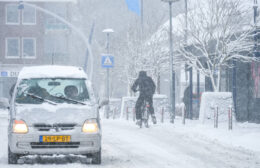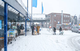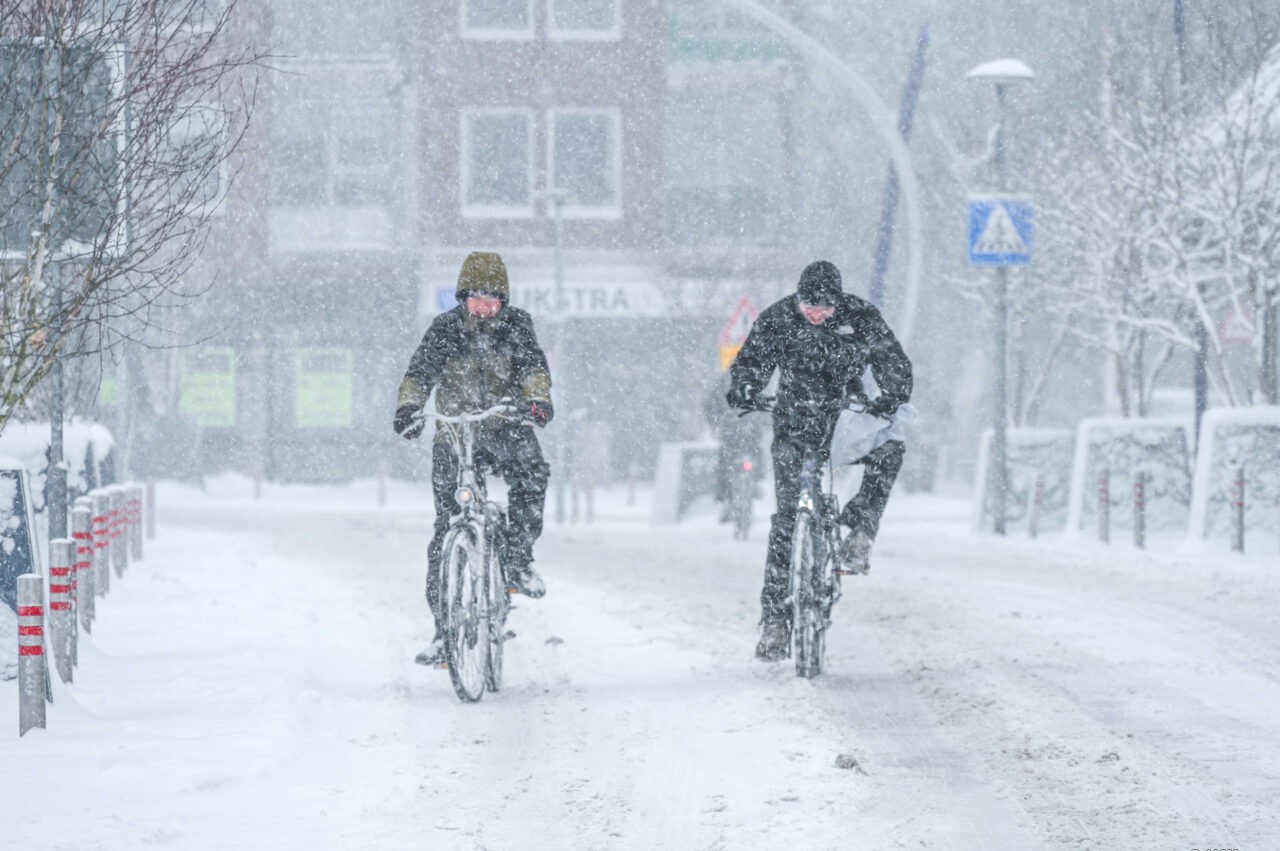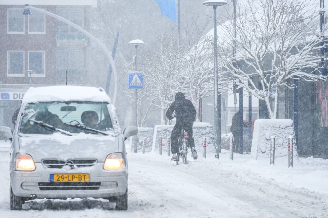 Fietsers worstelden zich door de sneeuw en auto’s gleden voorzichtig door het centrum. In het dorp was het duidelijk glad, waarna inwoners werden opgeroepen extra alert en voorzichtig te zijn.