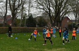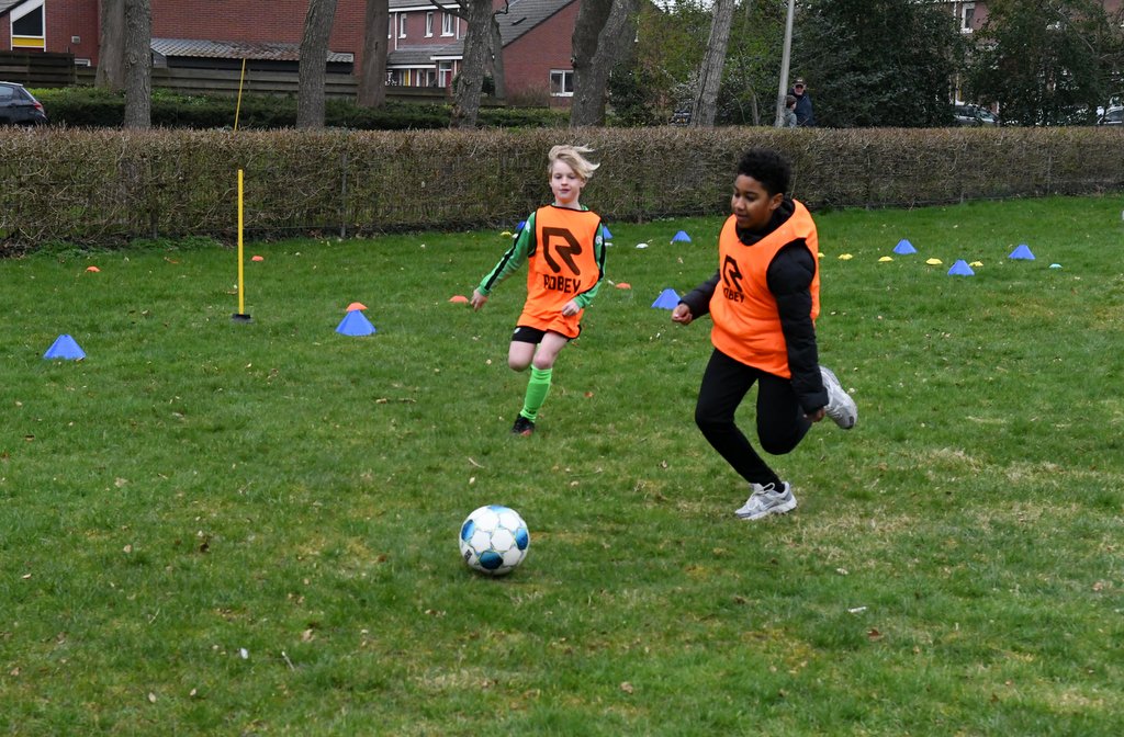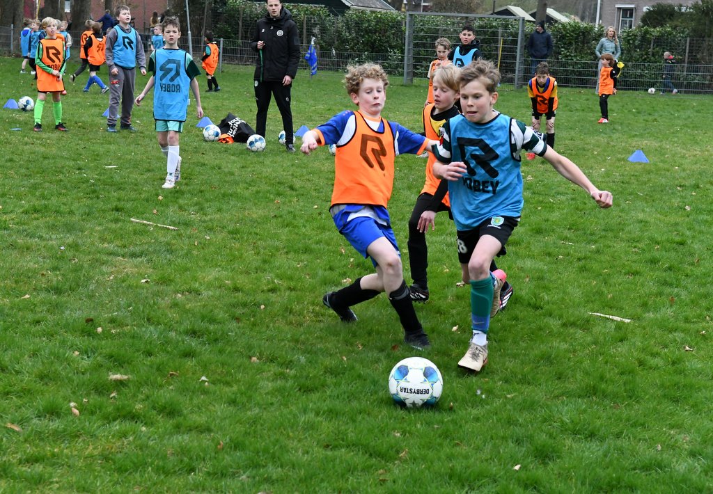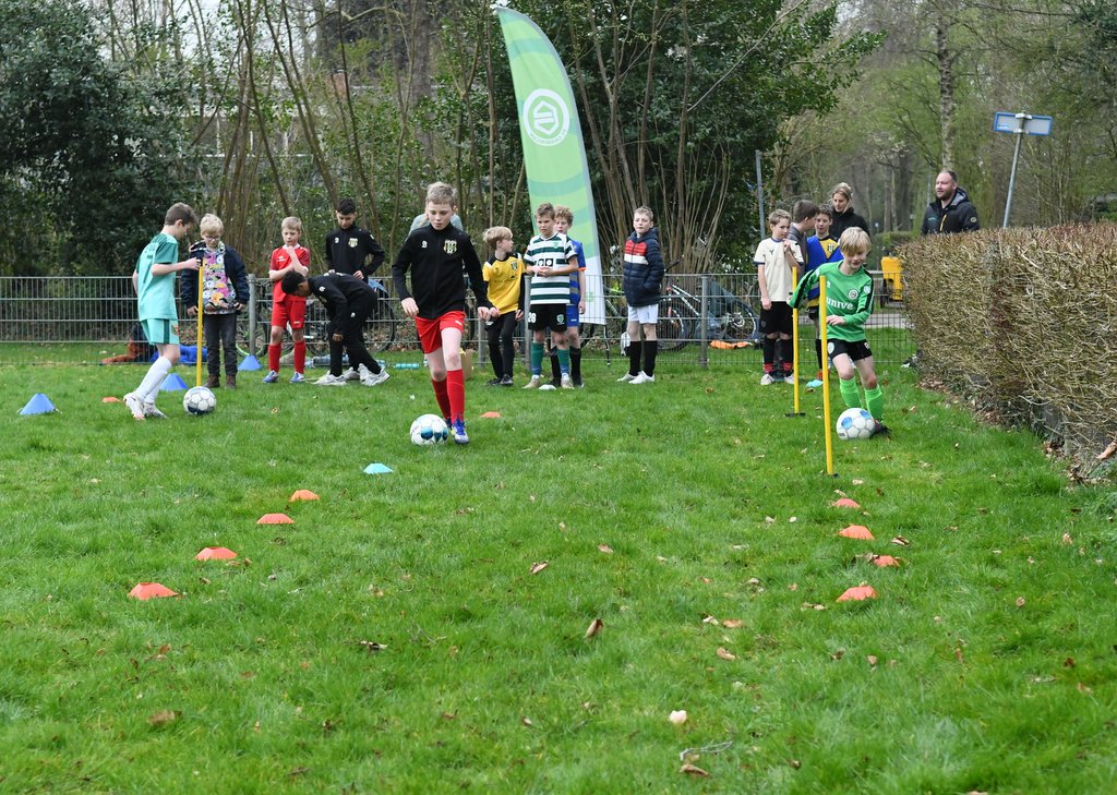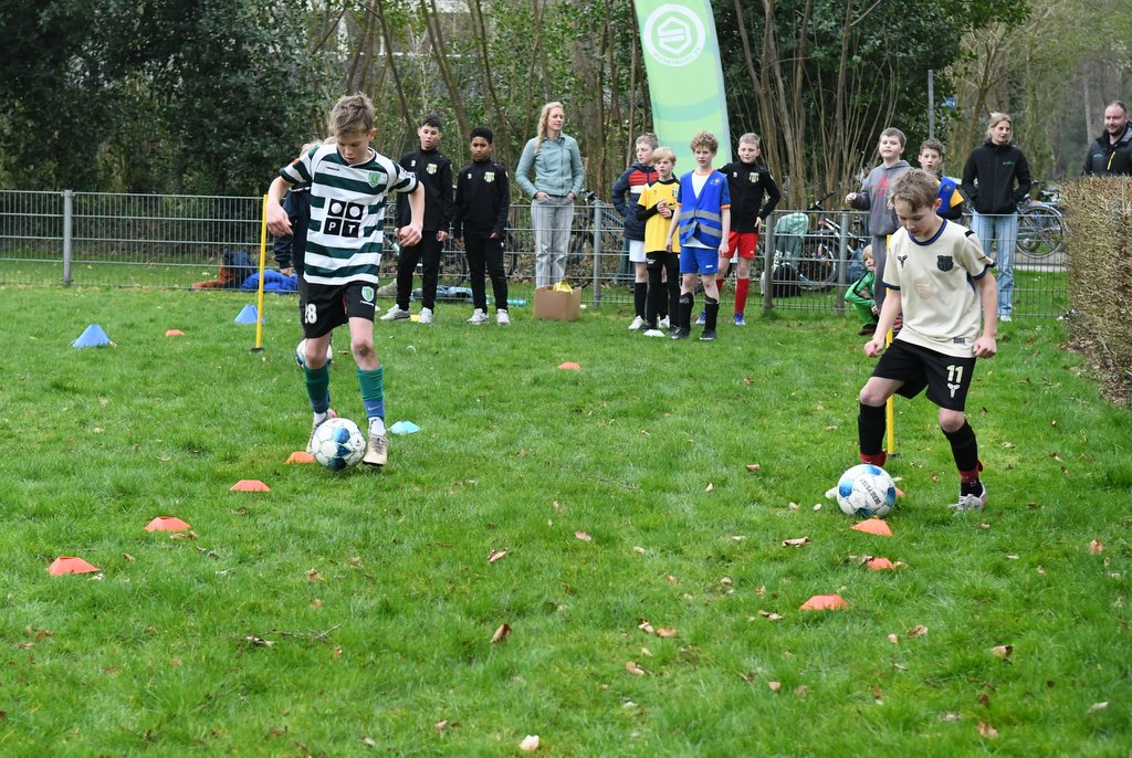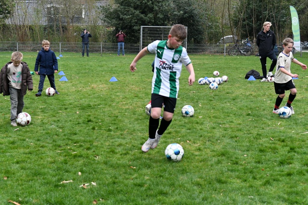 Tijdens de clinic werd er volop bewogen: van spannende onderlinge partijtjes tot een uitdagend slalom- en dribbelparcours. Op het veld werd fanatiek gestreden om elke bal, waarbij inzet en plezier hand in hand gingen.