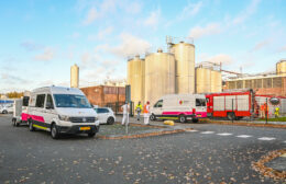 Buiten het terrein stonden een aantal vrachtwagens die moesten laden/lossen. Hoe lang het heeft geduurde voordat ze hun lading konden laden/lossen, is niet bekend.