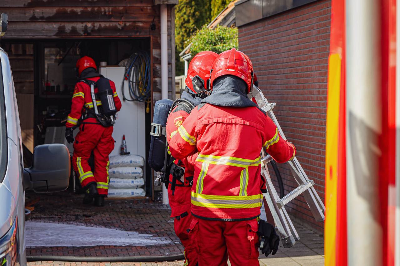 De brandweer is zaterdagmiddag uitgerukt voor een brand in een garage naast een woning aan de Houtwal in Zevenhuizen.