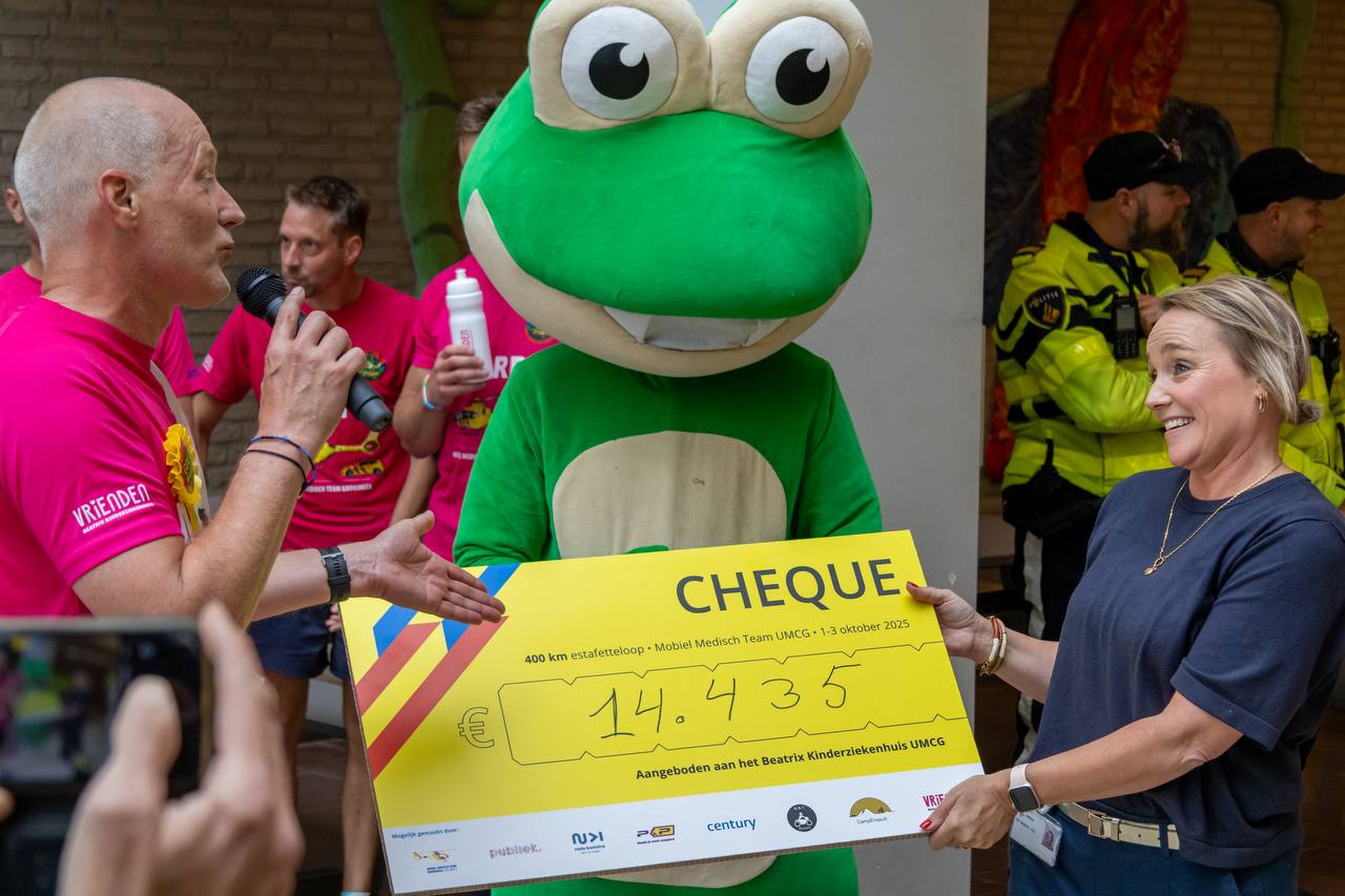 Na vier dagen hardlopen door het noorden van het land hebben negen leden van het Mobiel Medisch Team (MMT) vrijdagmiddag hun estafettetocht afgesloten bij het Beatrix Kinderziekenhuis in het UMCG. Met de sportieve actie haalden de hulpverleners ruim 14.500 euro op voor de Stichting Vrienden van het Beatrix Kinderziekenhuis.