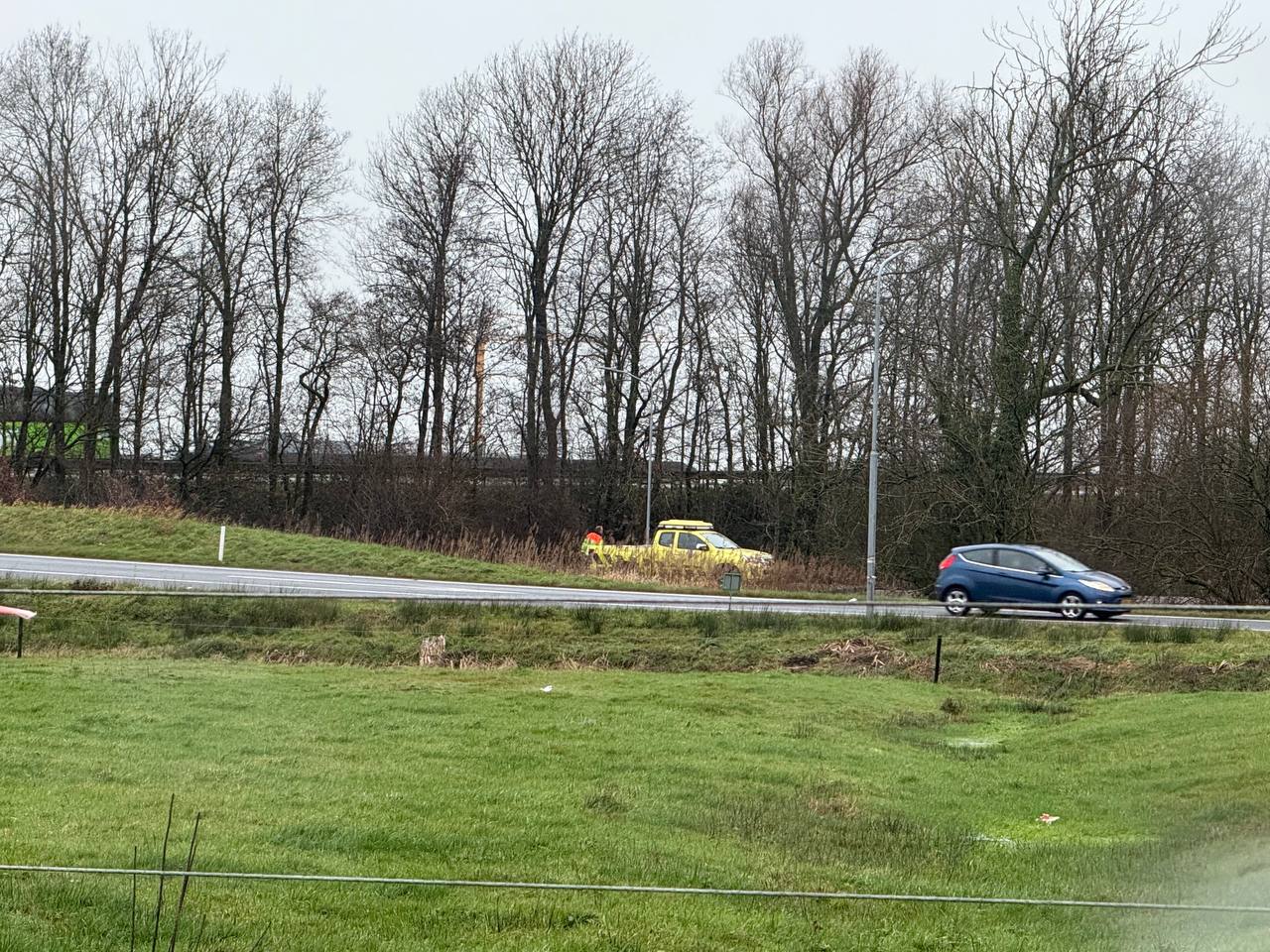 Rijkswaterstaat kwam ook ter plaatse en heeft eventuele schade aan het wegdek en de berm beoordeeld en wat rommel van het wegdek verwijderd. De politie heeft gegevens genoteerd van de betrokken personen waarna iedereen de weg kon vervolgen. De automobilist kwam met de schrik vrij, hulp van het ambulance personeel was niet nodig.