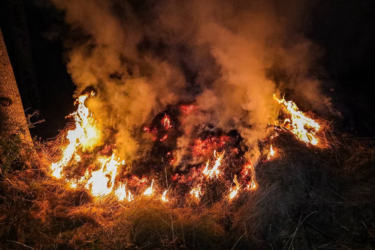 Net als een aantal dagen terug in Boerakker, bleek ook hier een bult met gemaaid gras in brand te staan. Naast de brandweer kwam werd ook de watertankwagen van Roden opgeroepen, om voor voldoende bluswater te zorgen. Nadat de dikste vlammen waren geblust, heeft een mobiele kraan de resten uit elkaar getrokken, waarna de brandweer verder kon met blussen.