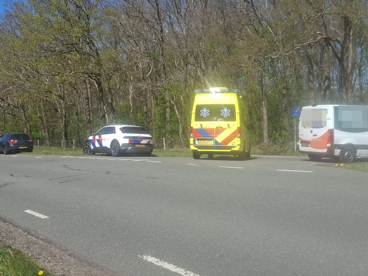 De scooterrijder kwam klem te zitten tussen een personenauto en een bedrijfsbus. Het ongeluk ontstond toen de bus wilde afslaan en een auto vanuit een zijweg over het fietspad naderde.