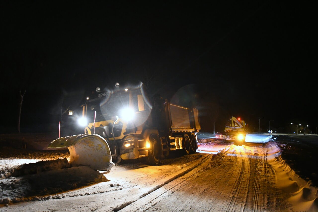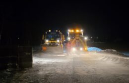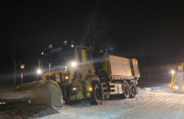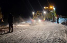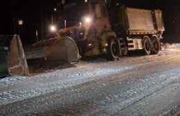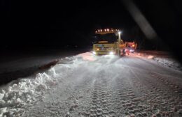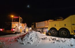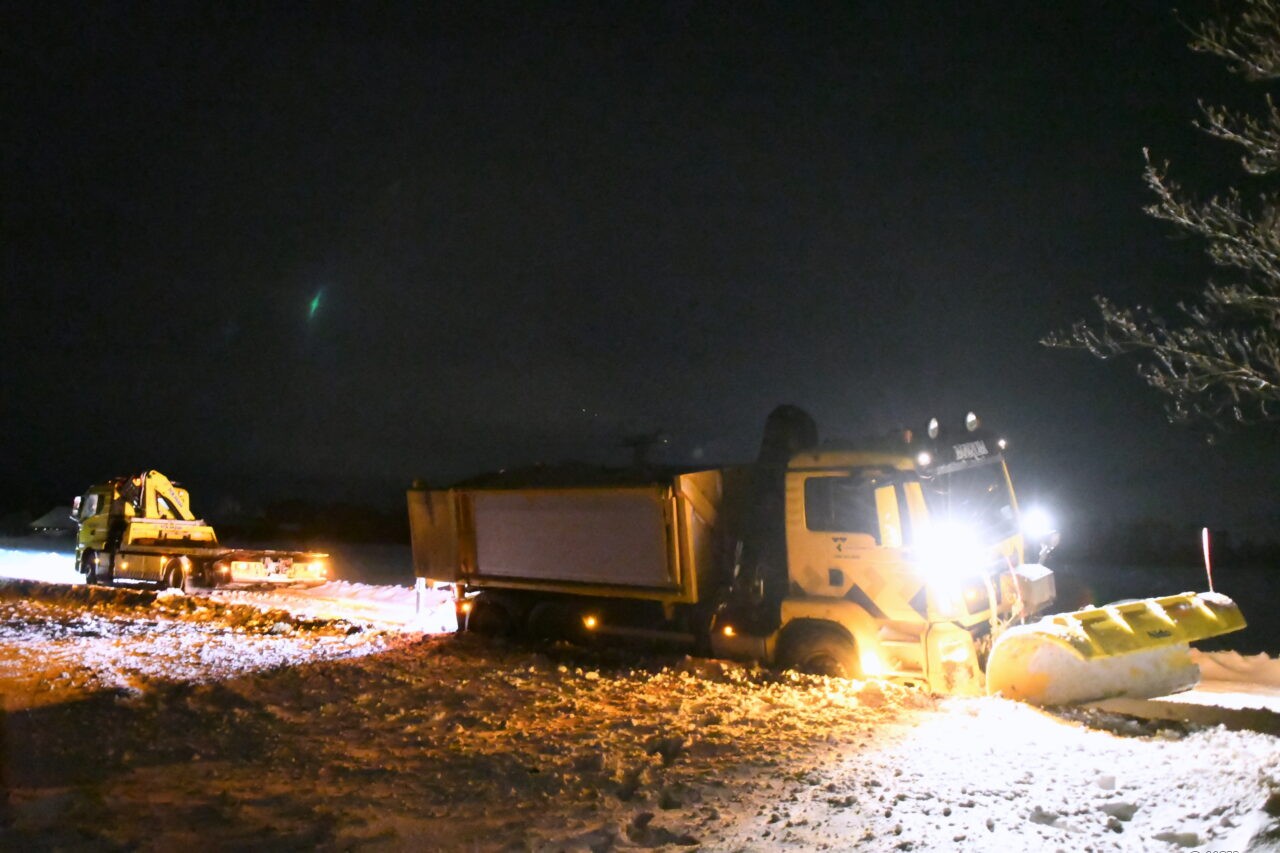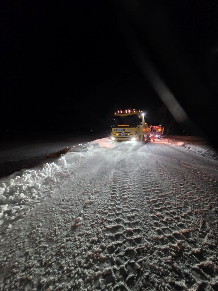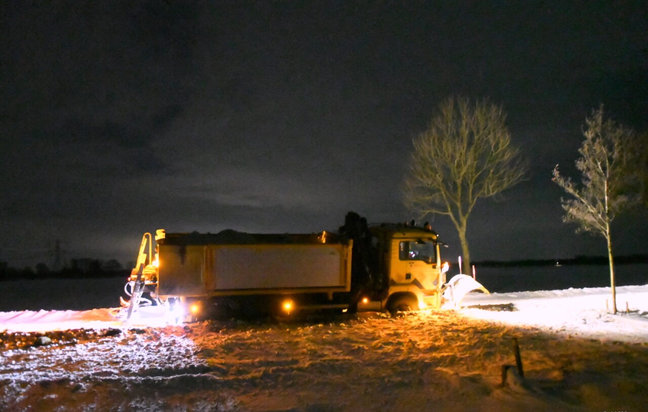 Een strooiauto van de gem. Westerkwartier die onderweg was om de wegen vrij te maken van sneeuw en ijs, is vanmorgen vast komen te zitten op zijn (strooi) route op de Provincialeweg (N980) tussen Doezum en Kornhorn.