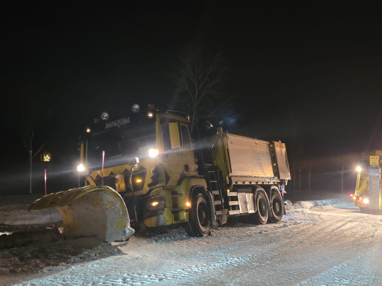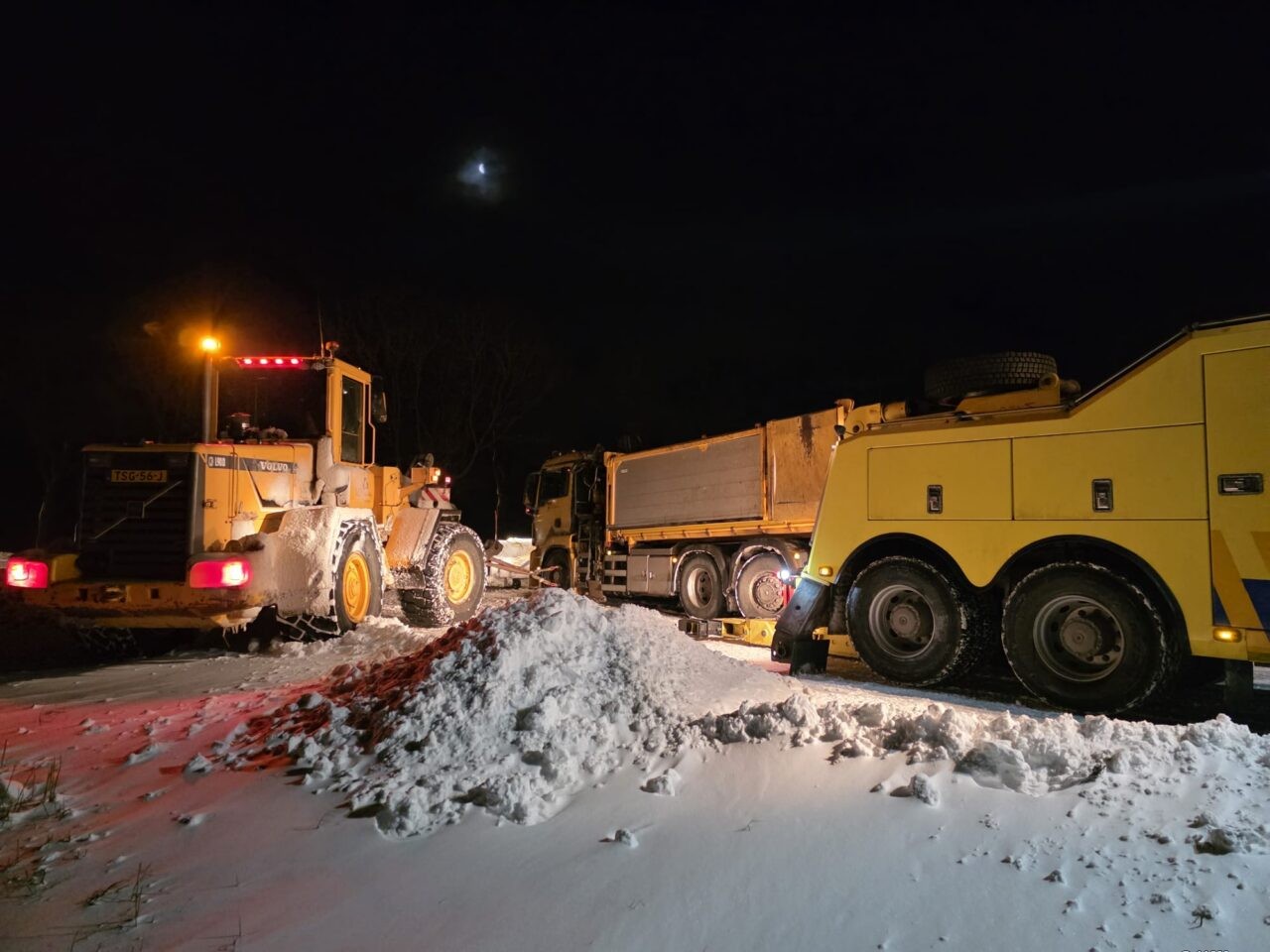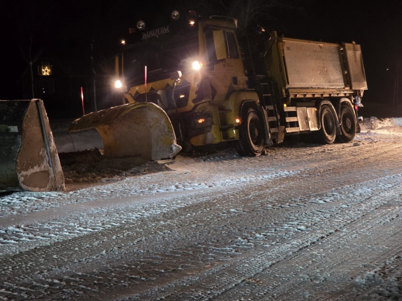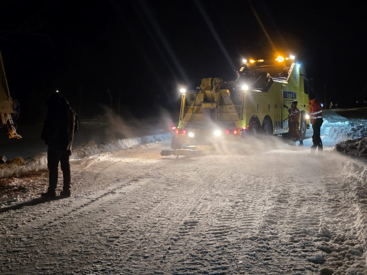 Net voorbij de afslag naar de Kaleweg, in de richting van Kornhorn gleed de wagen van de weg, en kwam muurvast te zitten in de berm. De wagen was nog volgeladen met strooizout. Op de Provincialeweg was hier en daar sprake van duinvorming.