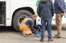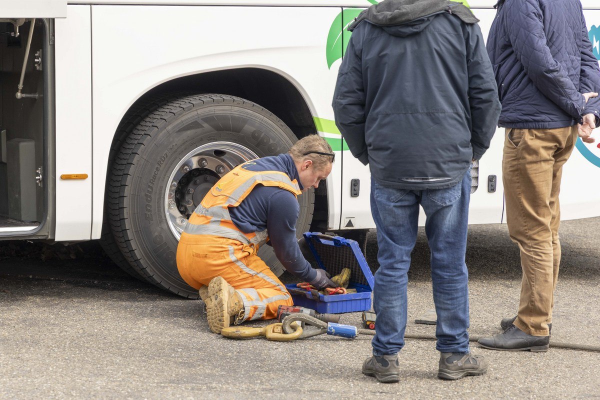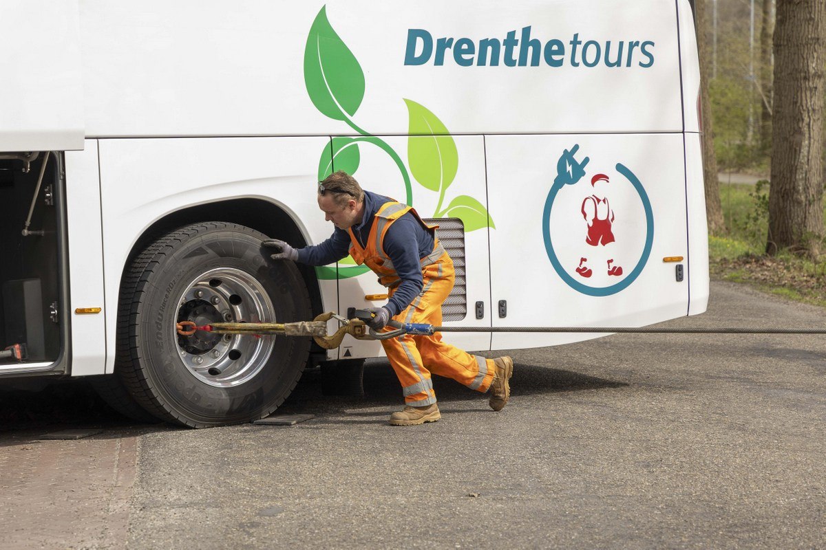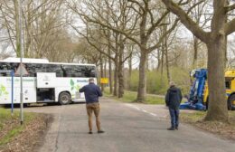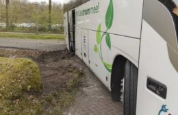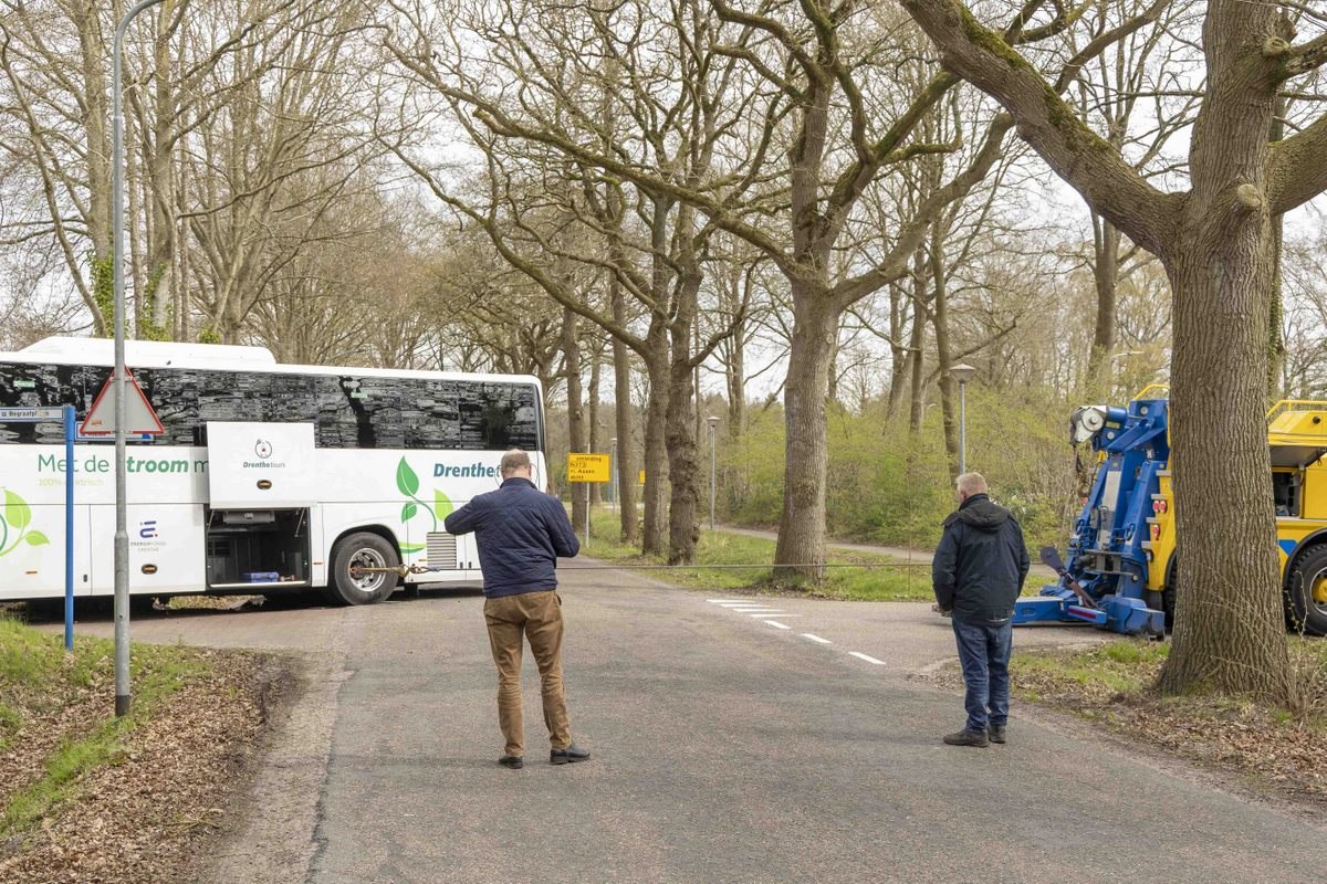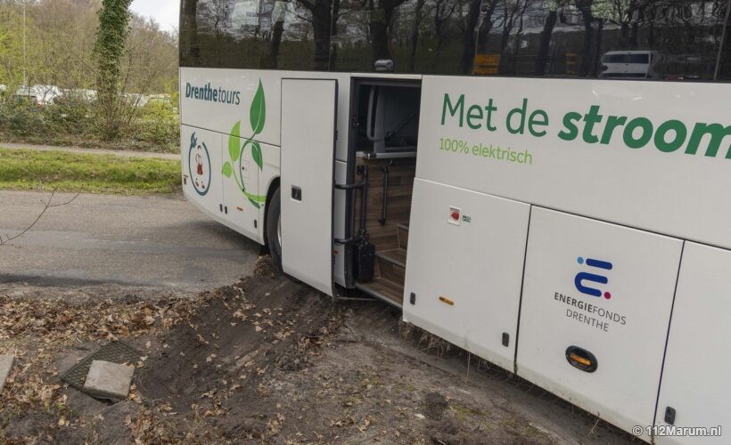 Een touringcar is zaterdagmiddag bijna in de sloot terechtgekomen aan de Hullenweg in Roden. Hoe het precies misging is niet duidelijk. De aanwezige chauffeur gaf aan dat hij de bus alleen kwam ophalen.