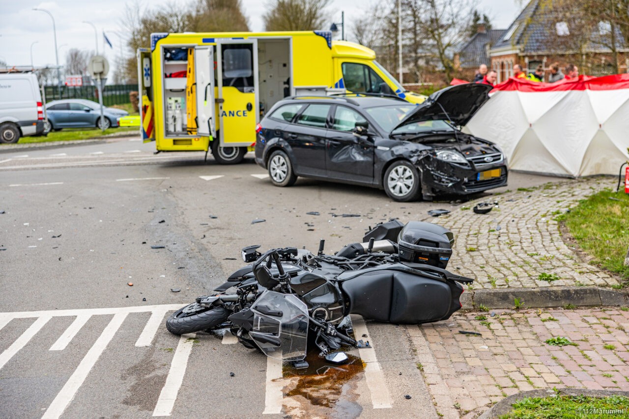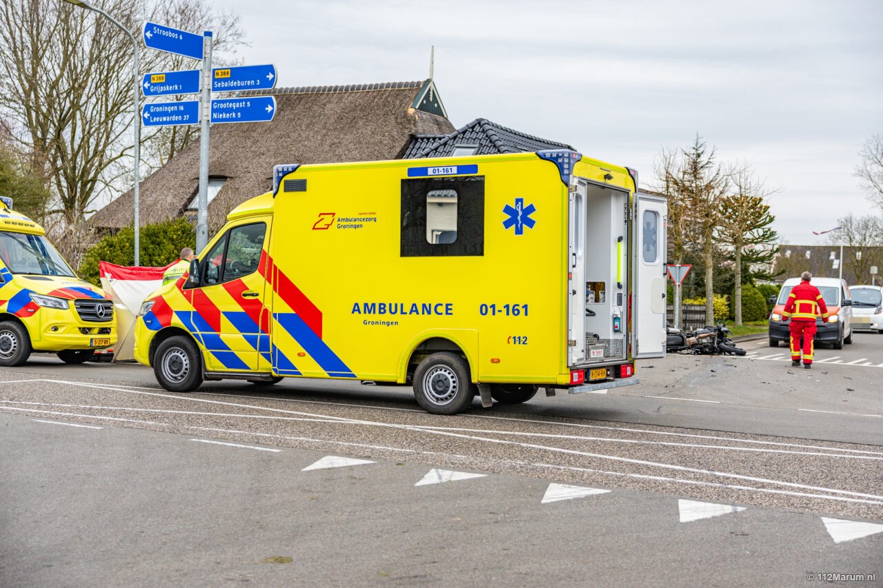 Twee gewonden bij ongeval tussen auto en motor bij Grijpskerk