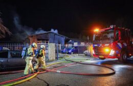 Uitslaande brand verwoest loods van autobedrijf in Roden