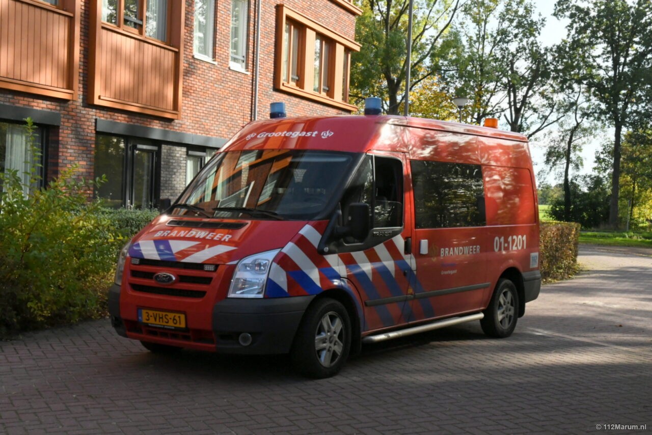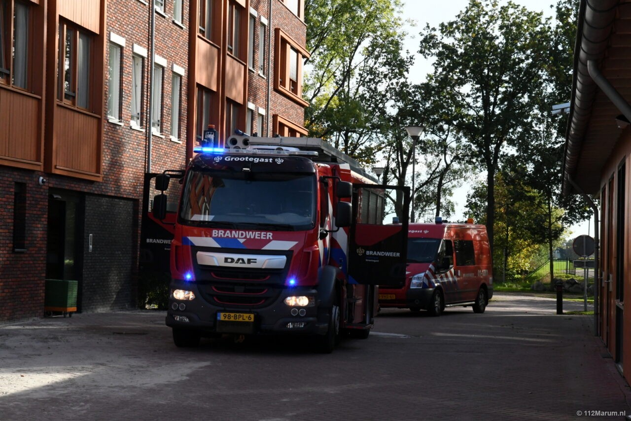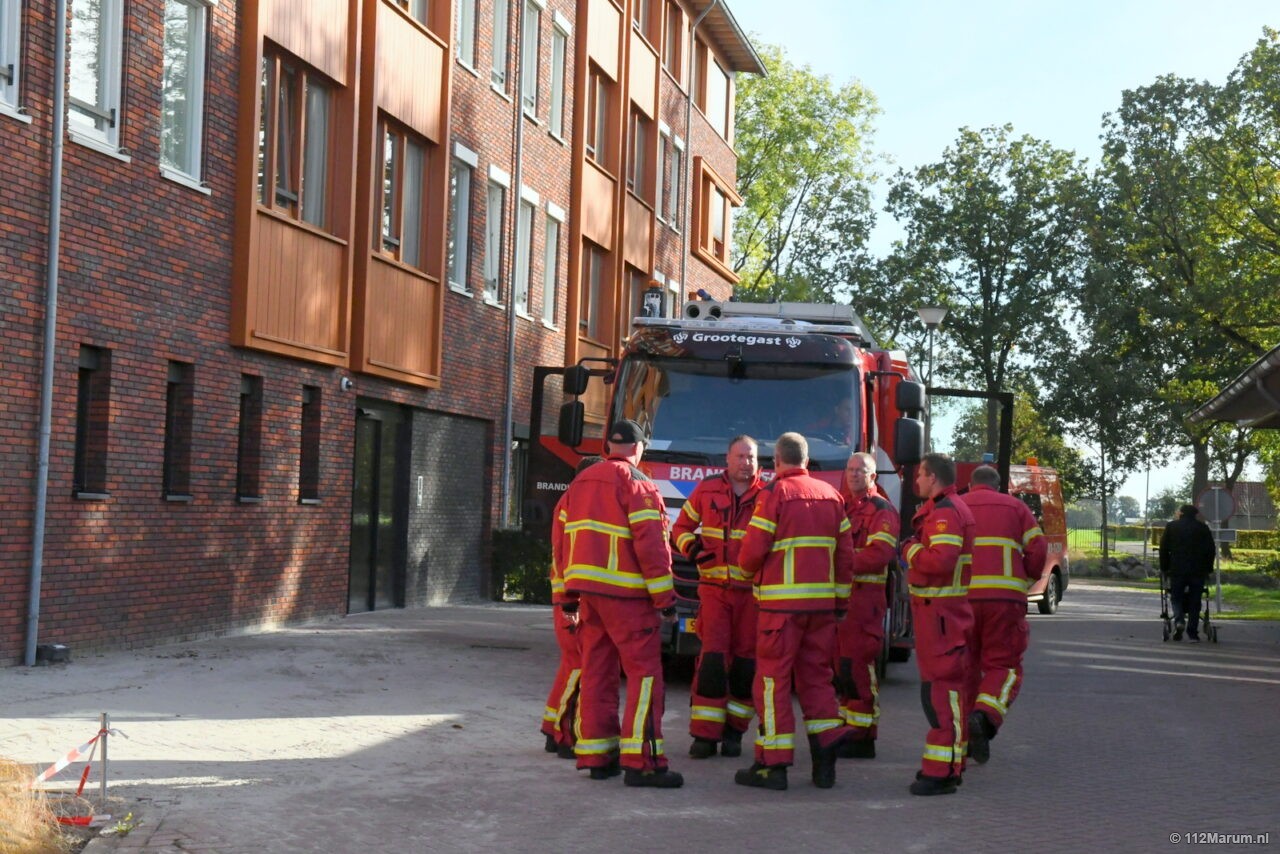 Net na drie uur zaterdagmiddag werd de brandweer van Grotegast gealarmeerd voor een woningbrand bij Zorgcentrum Het Hooge Heem in Grootegast.